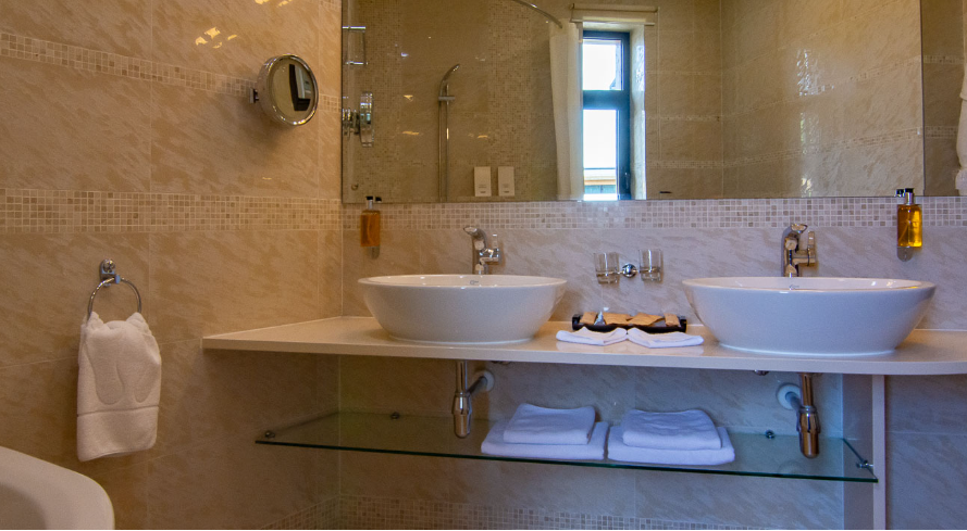 Кровать (180х200см) с ортопедическим матрасом, диван, прикроватные тумбочки, рабочий стол, стул или пуф, зеркало в полный рост, встроенный гардероб, сейф, кондиционер, бесплатный wi-fi, телефон, спутниковые каналы, интерактивное телевидение, жк телевизор, мини-бар, услуга «звонок-будильник». Ванная комната: ванна, фен, туалетные принадлежности, халат и тапочки. Большинство номеров имеют собственную террасу или балкон.