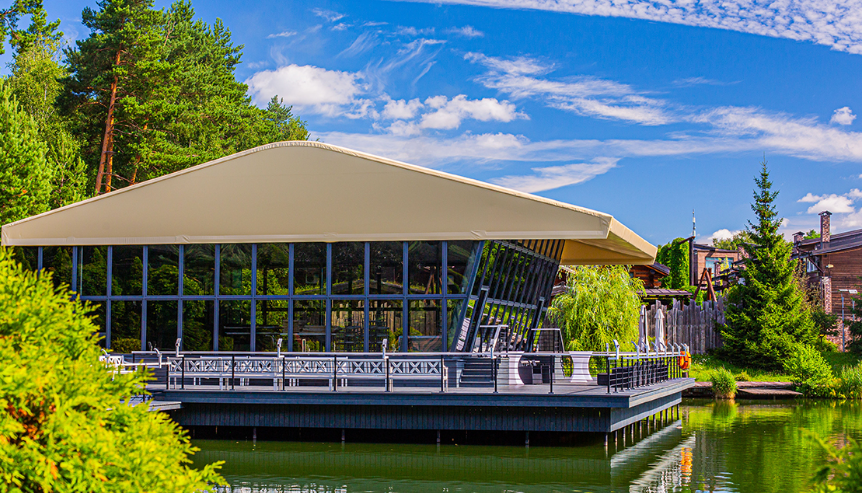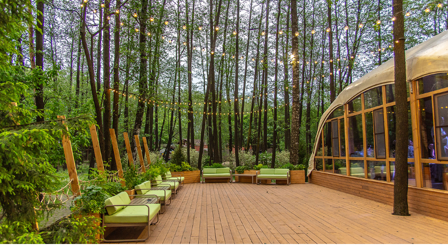 Отличной альтернативой ресторану станет шатер, позволяющий сочетать преимущества закрытого помещения с красотой природы и чистым воздухом.