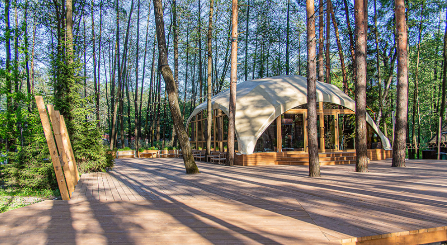 - шатер «Галерея» (банкет — 170 персон, фуршет — 200 персон, площадь 400 м²);