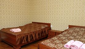 Однокомнатный номер с двумя двухспальными кроватями исполненный в классическом стиле.