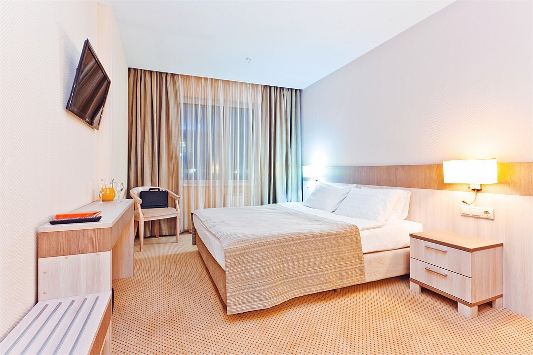 телевизор, Wi-Fi, телефон, холодильник, кондиционер, фен, ванна или душевая кабина, халаты, банные полотенца, тапочки, косметические средства, кровать «King size», шкаф для одежды, журнальный столик, письменный стол, мини-бар, письменные принадлежности, чайный набор, набор посуды, обслуживание номеров, сейф, чайник, мягкая мебель, питьевая вода, ковровое покрытие, вид на город, цифровое тв, можно с питомцамиВ гостиничном номере