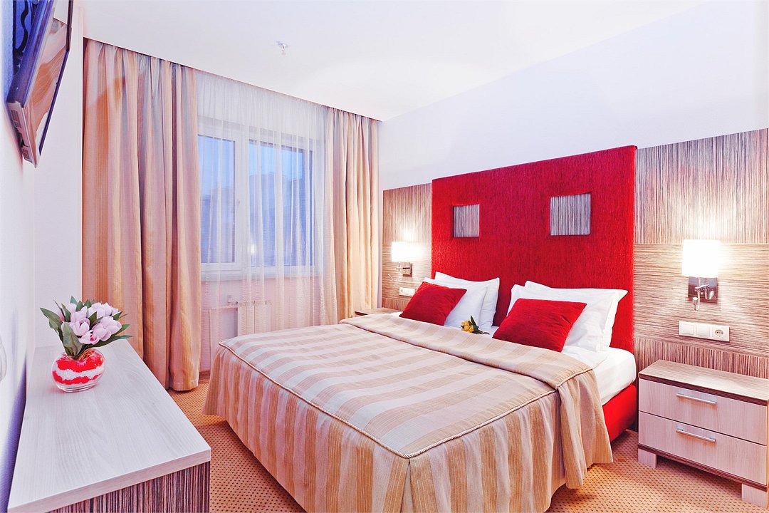 телевизор, Wi-Fi, телефон, холодильник, кондиционер, фен, душевая кабина, банные полотенца, косметические средства, двуспальная кровать, шкаф для одежды, письменный стол, зеркало, мини-бар, письменные принадлежности, чайный набор, набор посуды, обслуживание номеров, сейф, чайник, питьевая вода, ковровое покрытие, вид на город, высокие потолки, цифровое тв, можно с питомцамиВ гостиничном номере