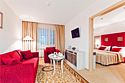 телевизор, Wi-Fi, телефон, холодильник, кондиционер, фен, ванна или душевая кабина, халаты, банные полотенца, тапочки, косметические средства, кровать «King size», шкаф для одежды, журнальный столик, письменный стол, две комнаты, мини-бар, чайный набор, набор посуды, обслуживание номеров, сейф, чайник, мягкая мебель, питьевая вода, ковровое покрытие, вид на город, цифровое тв, можно с питомцамиВ гостиничном номере