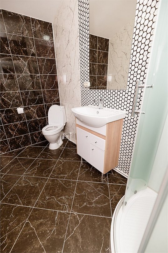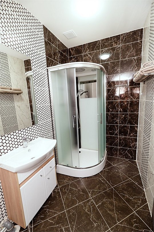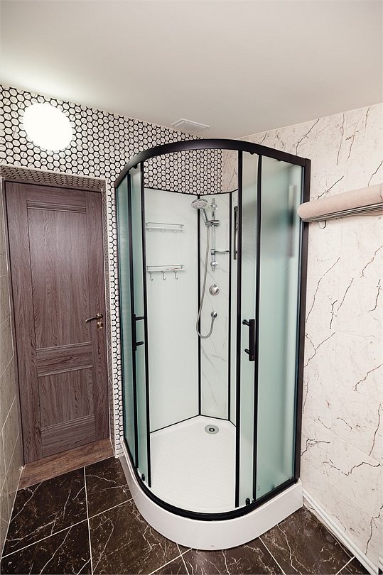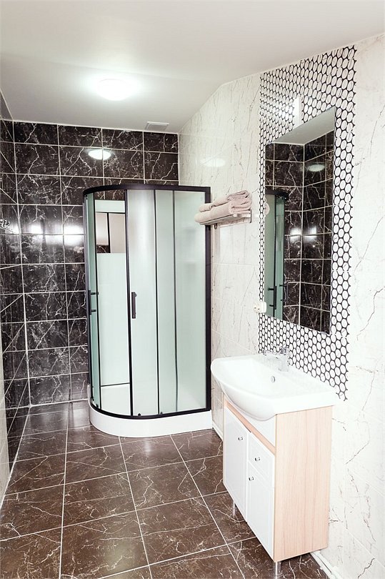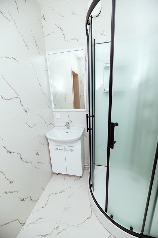 Номер с собственной ванной комнатой, кухонной зоной для комфортного проживания и отдыха.
