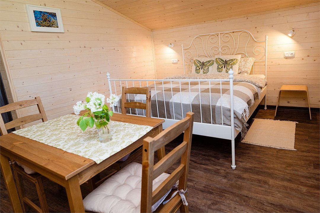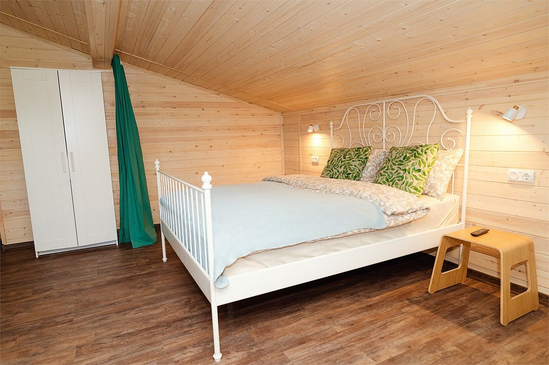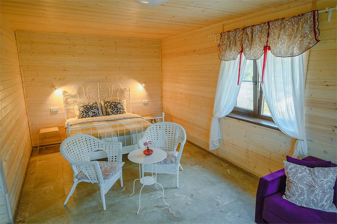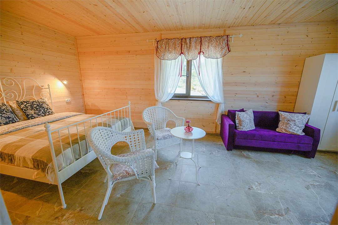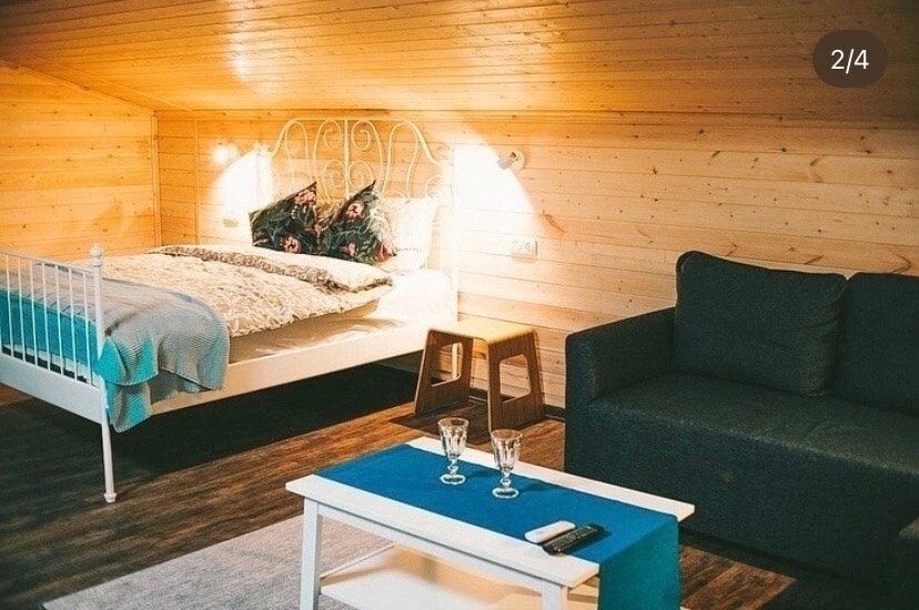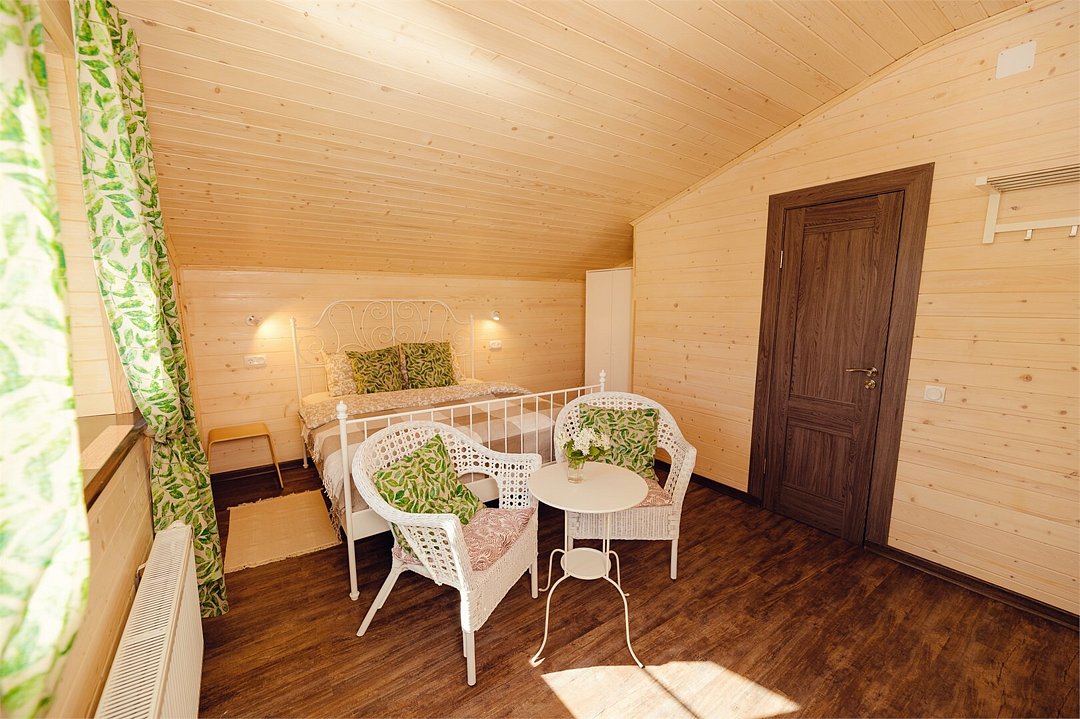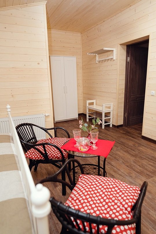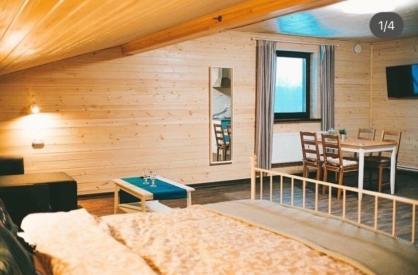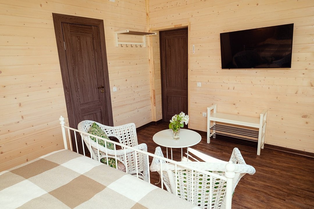 Апартаменты — светлый, уютный номер для всей семьи. Запах дерева, интерьер переносит в комфортную загородную жизнь.