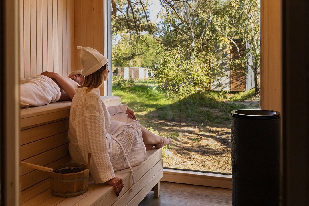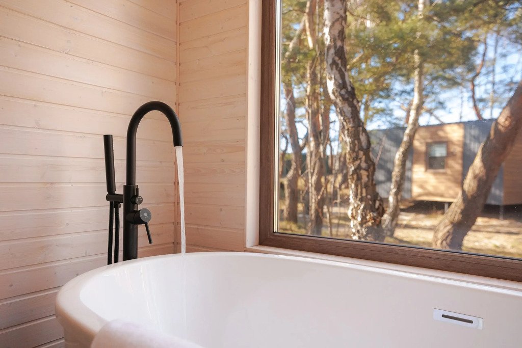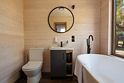 Уютный дом с панорамными окнами и просторной террасой идеально подходит как для романтического отдыха двоих, так и для размещения всей семьёй. Особый шарм — ванная комната с панорамным остеклением, где можно принимать душ, наслаждаясь окружающей тишиной и красотой хвойного леса.