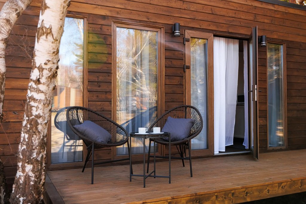 Однокомнатный домик с панорамными окнами и террасой