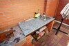 Санузел с душем, оборудованная кухня.