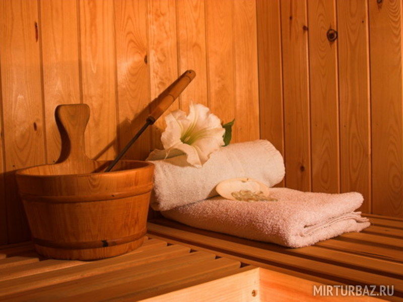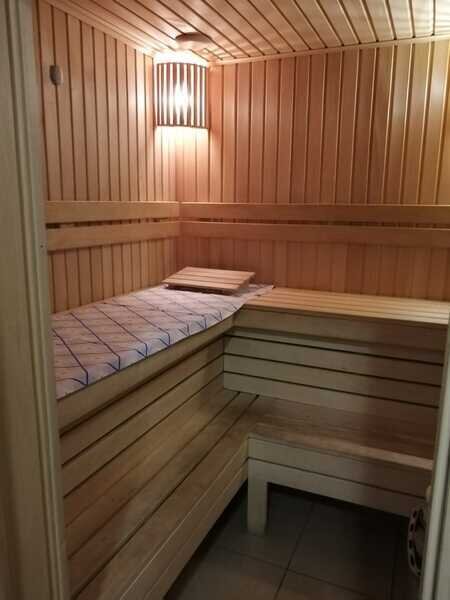 На первом этаже дома имеется просторный зал с камином. Гости могут посетить сауну. Предусмотрена стоянка для автомобилей. Оборудована детская игровая площадка.