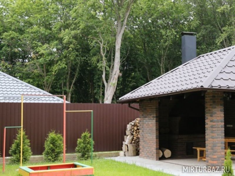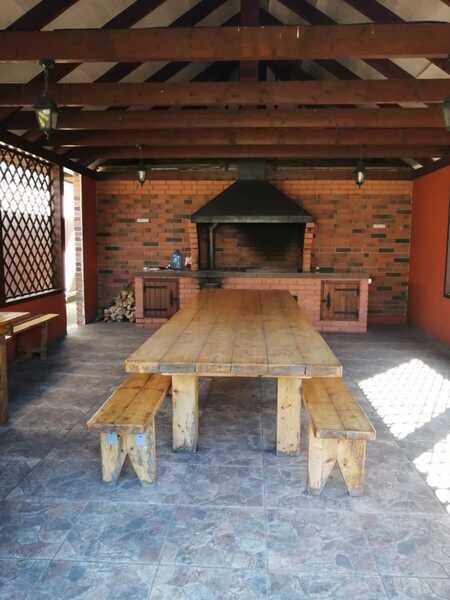 Оборудована кухня-столовая со всей необходимой техникой и посудой. Имеется посудомоечная машина. Есть беседка для барбекю с мангальной зоной.