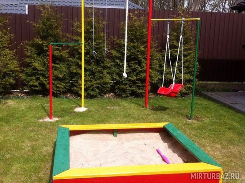 Для развлечения Ваших деток оборудована небольшая игровая площадка с качелями и песочницей.