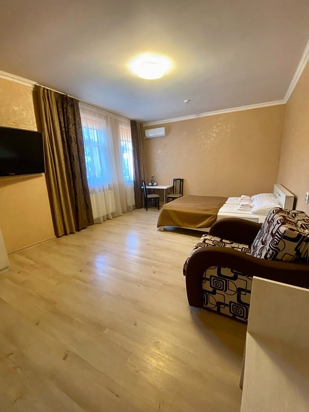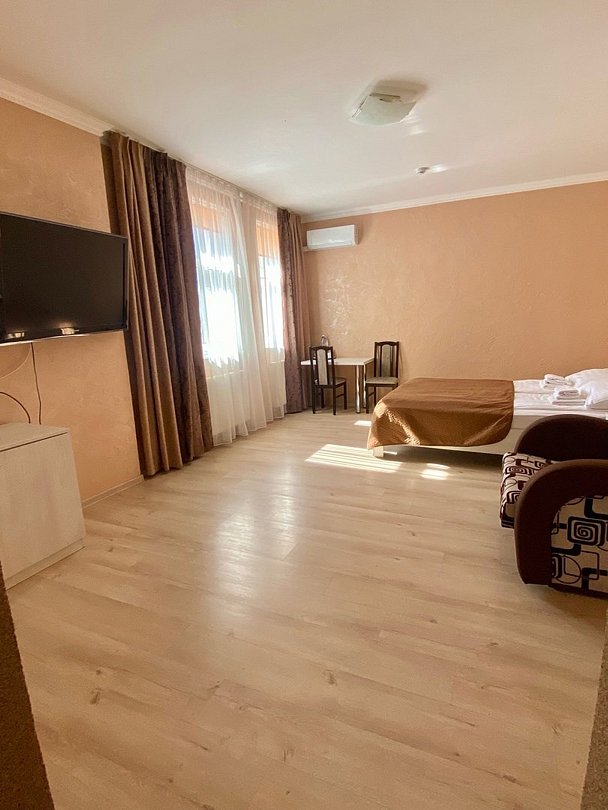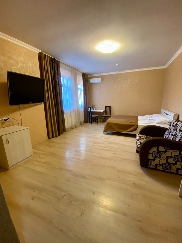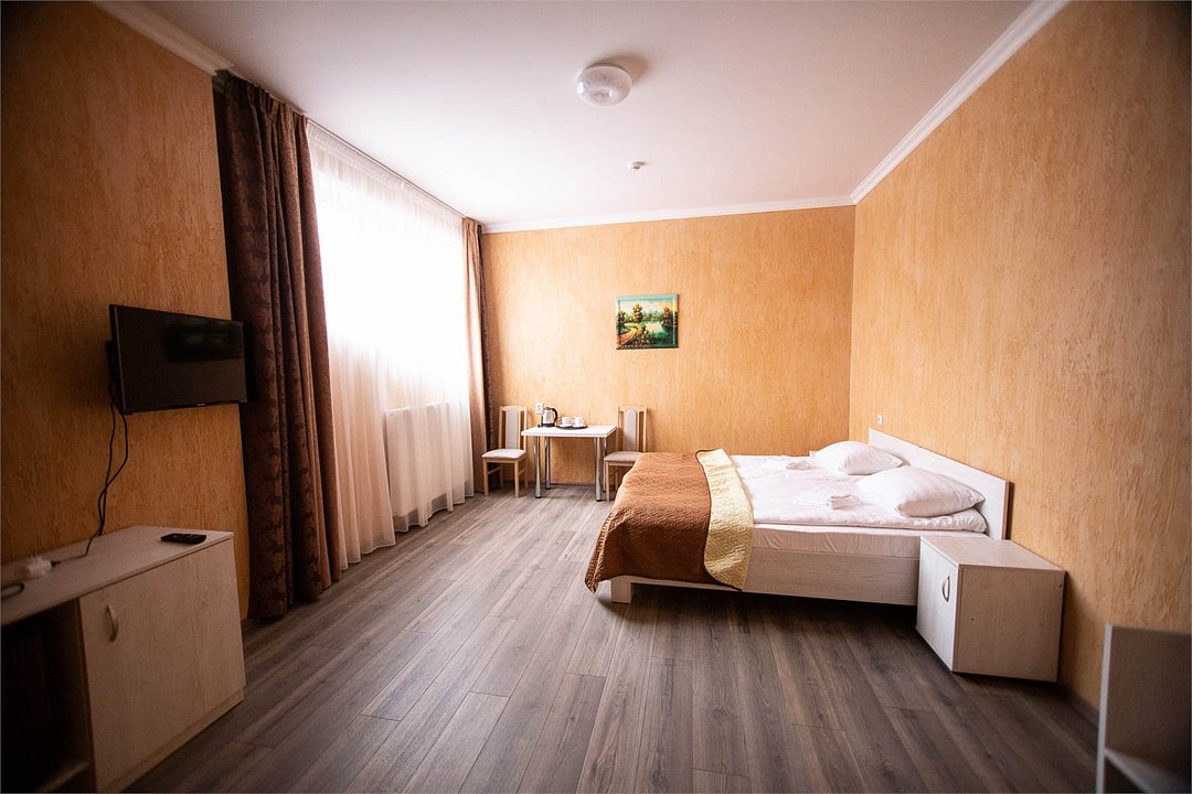 В числе удобств стандартных номеров обставлены удобной мебелью и оснащены современным телевидением,ванной комнатой, холодильником и электрическим чайником.