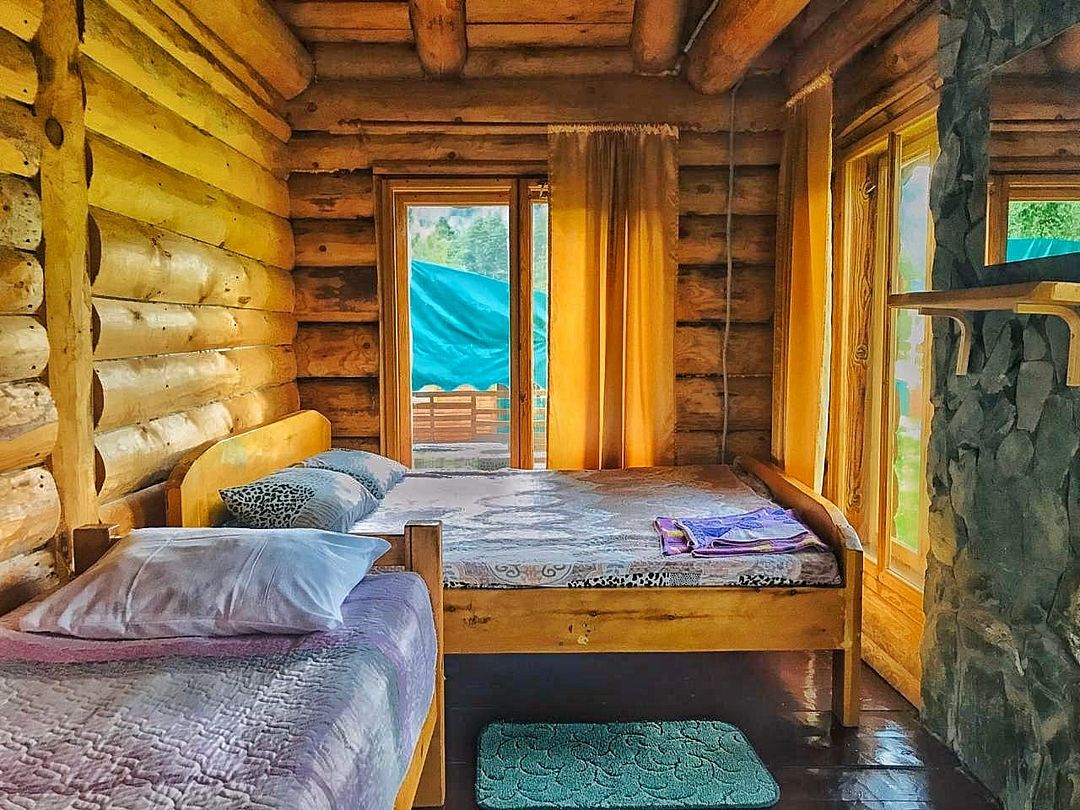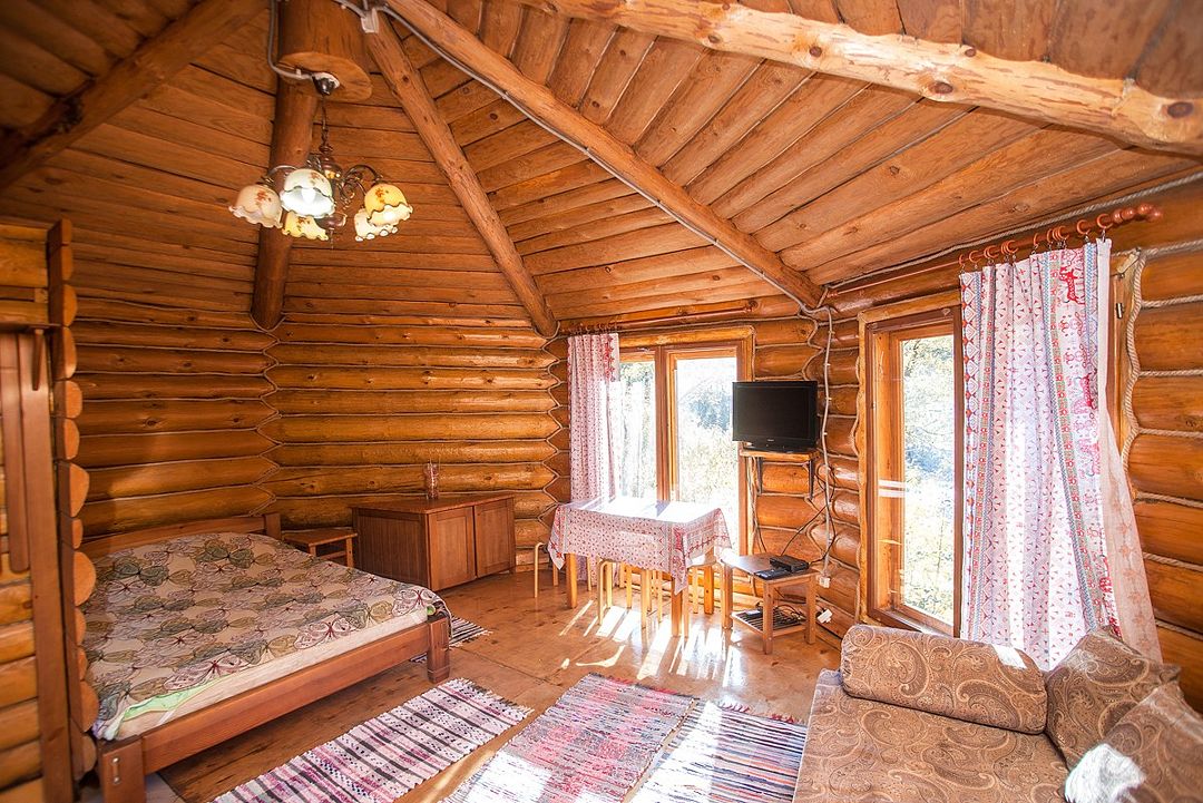 телевизор, спутниковое телевидение, водонагреватель, двуспальная кровать, стулья, вешалки, журнальный столик, обеденный стол, зеркало, ковер, две комнаты, камин, набор посуды, чайник, раковина, обеденная зона, отдельный вход в номер, душ, вид на реку, высокие потолки, стаканы, столовые приборы, туалетные средства, туалет, мангал, раскладное кресло, мини-холодильник, вид на горы, номер для некурящих, вид на лес, кресло-кровать, межкомнатная дверь, уборка номера, мыло, можно с питомцамиВ домике