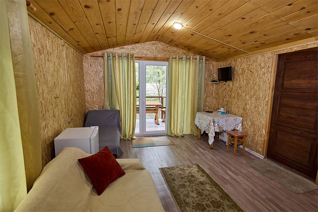 телевизор, спутниковое телевидение, микроволновая печь, водонагреватель, терраса, двуспальная кровать, стулья, шкаф для одежды, обеденный стол, зеркало, ковер, две комнаты, набор посуды, чайник, раковина, обеденная зона, отдельный вход в номер, душ, вид во двор, стаканы, столовые приборы, тумба, туалетные средства, туалет, мангал, раскладной диван, мини-холодильник, вид на горы, номер для некурящих, двуспальный раскладной диван-кровать, уборка номера, уличный стол и стулья из тикового дерева, мыло, можно с питомцамиВ домике