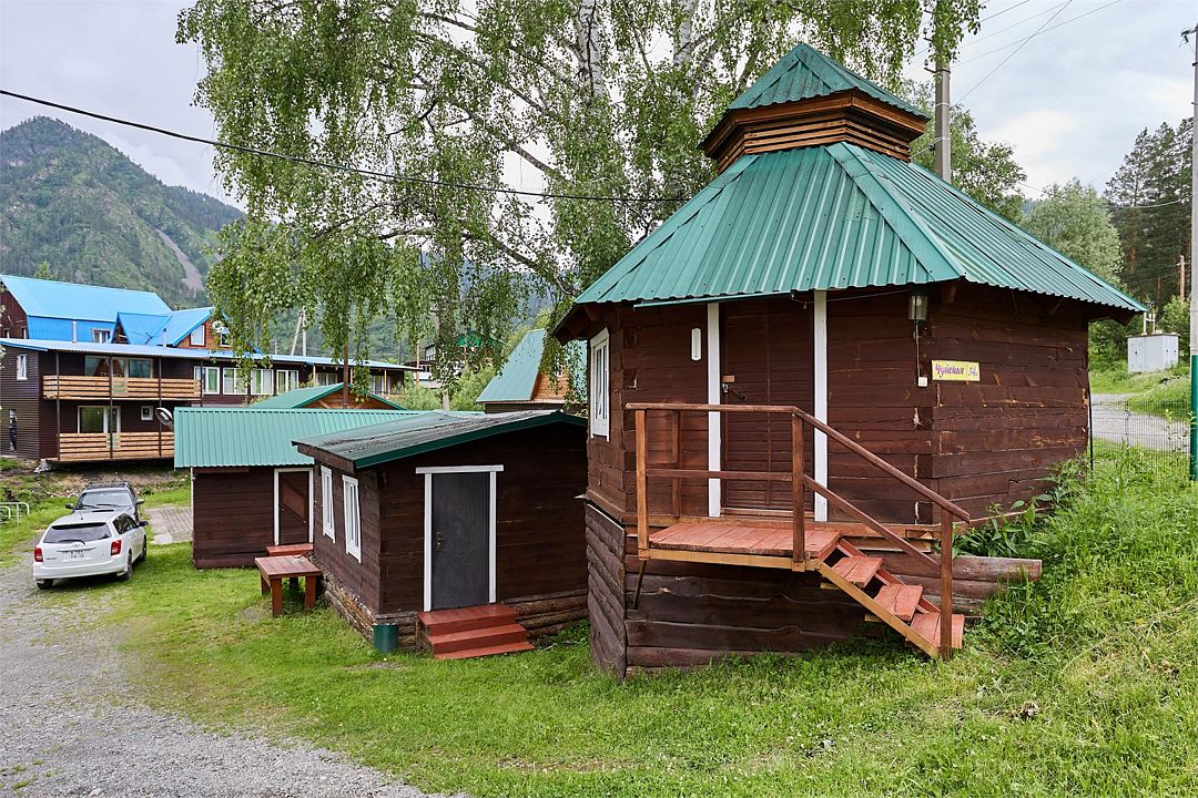 Летний, уникальный домик на двоих, построенный в форме башни. Находится на возвышенности и имеет доступ к р. Баранголки, и песчаному пляжу р. КатуньУслуги и удобства