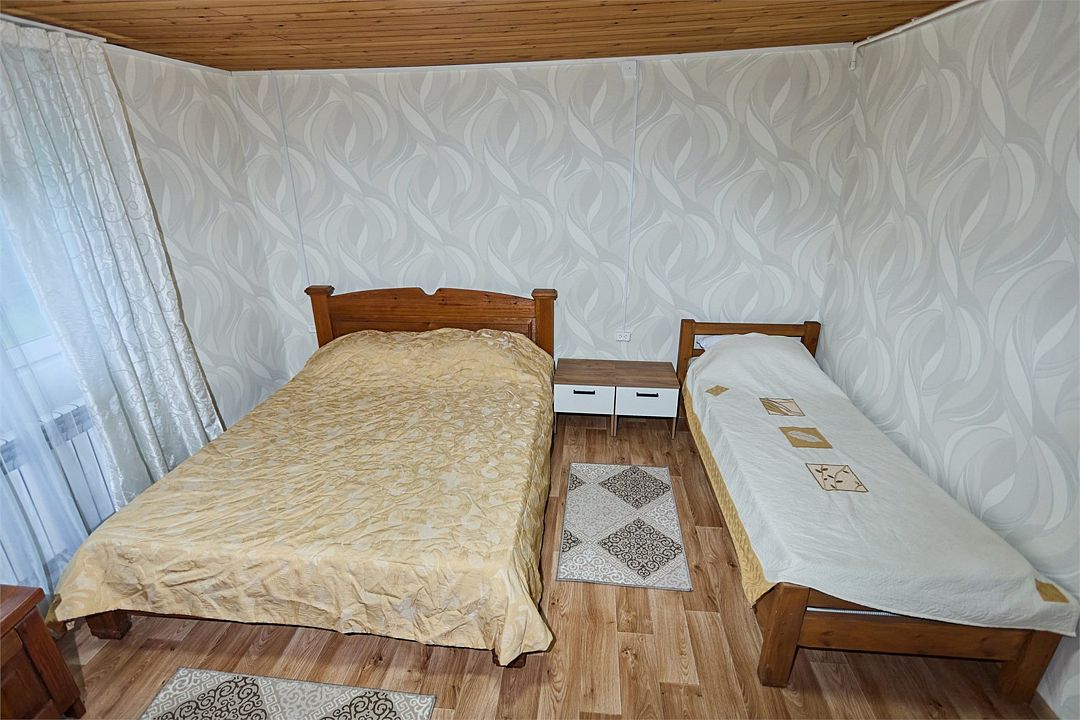 водонагреватель, двуспальная кровать, односпальная кровать, шкаф для одежды, вешалки, зеркало, ковер, две комнаты, раковина, отопление, душ, вид во двор, стул, тумба, туалетные средства, туалет, мангал, мини-холодильник, номер для некурящих, межкомнатная дверь, уборка номера, мыло, можно с питомцамиВ гостиничном номере