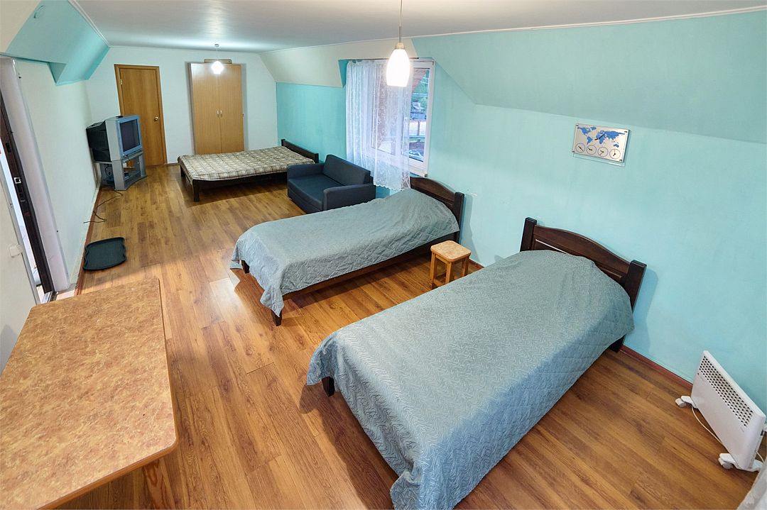 Трехместный номер с входом через гостиную коридор, небольшой и уютный.Услуги и удобства