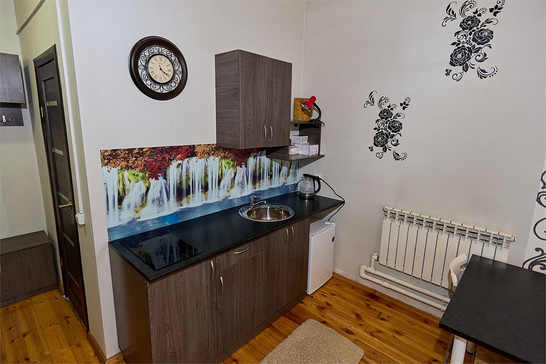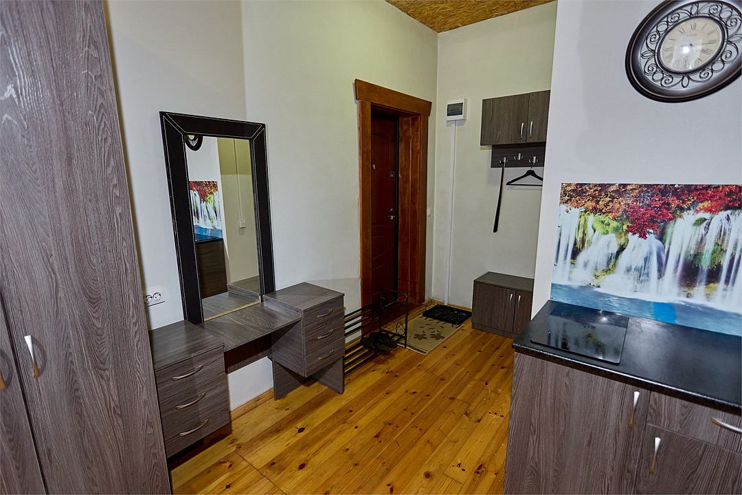 водонагреватель, двуспальная кровать, стулья, вешалки, обеденный стол, зеркало, комод, ковер, две комнаты, набор посуды, чайник, раковина, обеденная зона, отдельный вход в номер, душ, вид во двор, стаканы, столовые приборы, туалетные средства, туалет, диван-кровать, мини-холодильник, номер для некурящих, межкомнатная дверь, уборка номера, мылоВ гостиничном номере