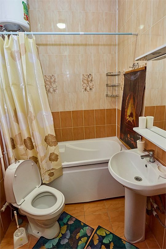 телевизор, спутниковое телевидение, водонагреватель, двуспальная кровать, односпальная кровать, стулья, шкаф для одежды, зеркало, ковер, две комнаты, набор посуды, чайник, раковина, отопление, душ, вид во двор, стаканы, столовые приборы, тумба, туалетные средства, туалет, мини-холодильник, мини-кухня, номер для некурящих, межкомнатная дверь, уборка номера, мылоВ гостиничном номере