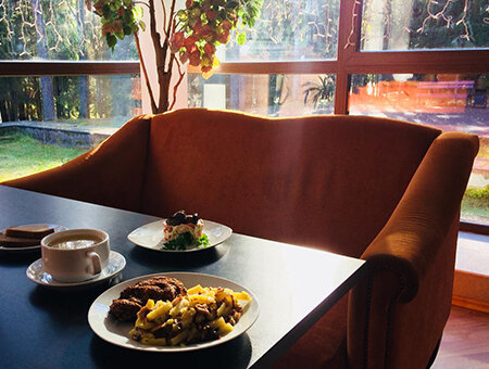 Вкусно и сытно поесть можно в ресторане, где для Вас приготовят блюда русской и европейской кухни. Также, в коттеджах есть мини-кухни. В летнее время можно воспользоваться заказным меню и организовать пикник.