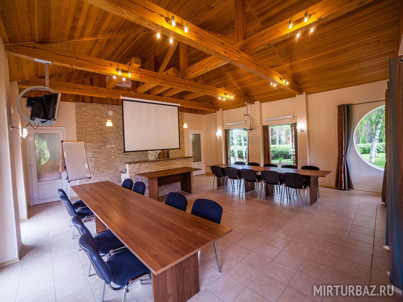 Конференц-зал гостиничного комплекса Хижина хорошо подходит для деловых мероприятий различного вида: бизнес-, пресс,- веб- и научных конференций. Зал одинаково хорошо подходит как для небольших конференций, так и для масштабных мероприятий с большим количеством участников.