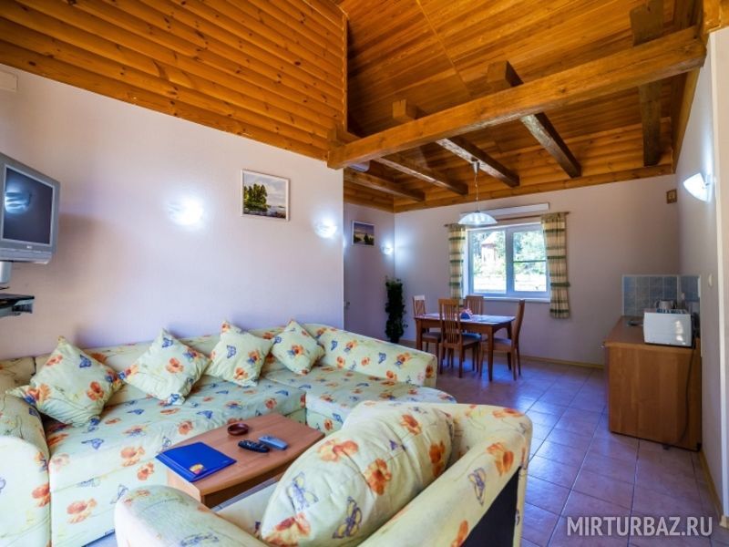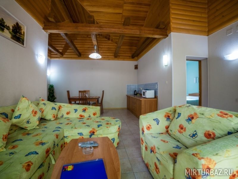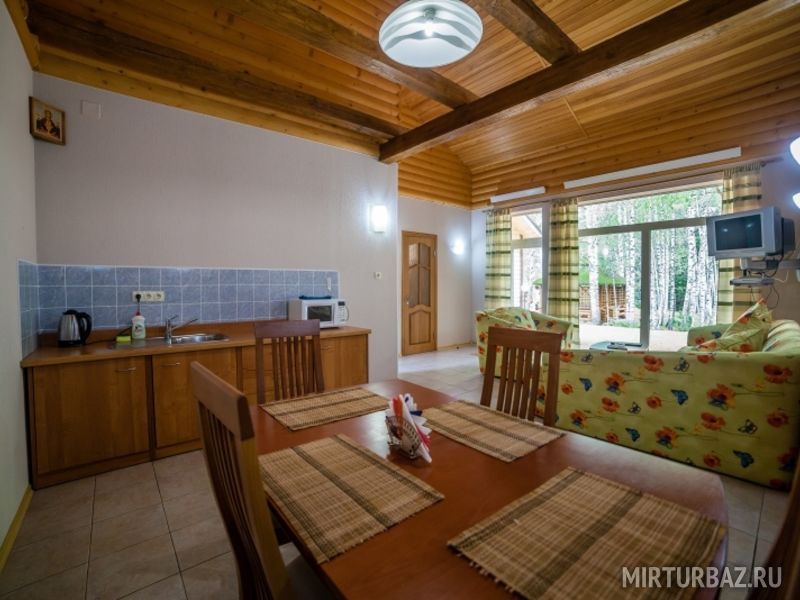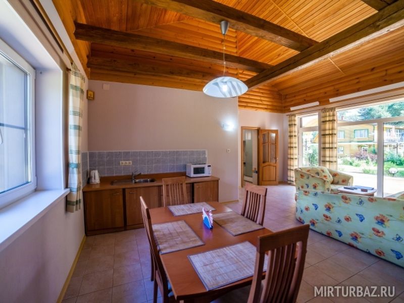 Для проживания можно забронировать как отдельный коттедж, так и номер «апартаменты. В каждом из вариантов есть все необходимое для проживания: комфортные спальные места, мебель, собственная ванная комната и санузел.