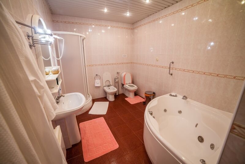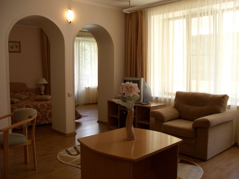 В номере: двуспальная кровать, диван, кресла, ТВ, мини-холодильник, балкон. В ванной: душевая кабина, гидромассажная ванна, фен, туалет.