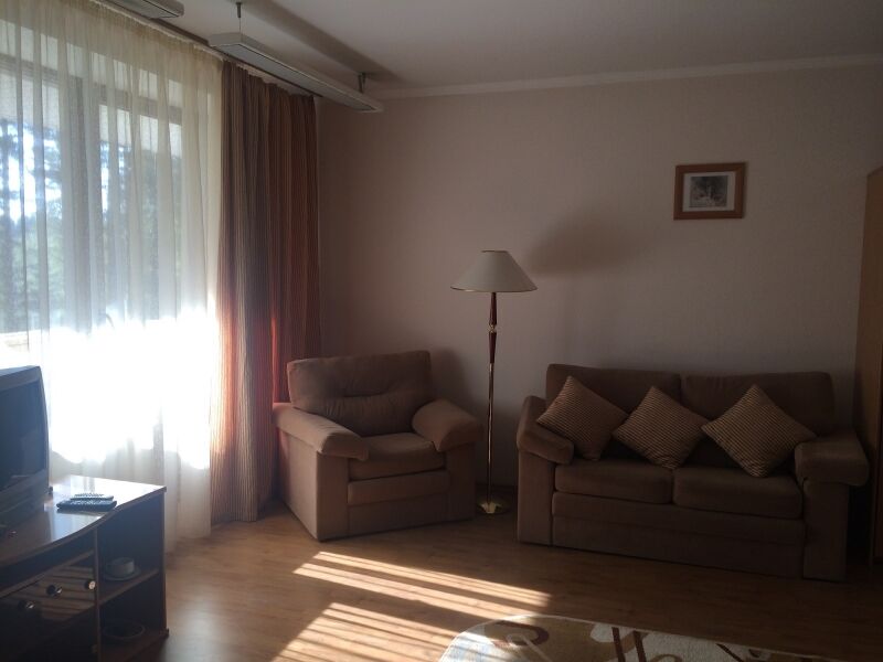 В номере: 2 спальни, раздельный санузел и ванная комната, балкон. В спальне 1: две односпальные кровати, ТВ. В спальне 2: две односпальные кровати, раскладной полутороспальный диван, ТВ, мини-холодильник. В ванной комнате: фен, душевая кабина, туалет.