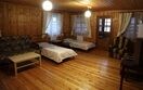 Этот коттедж занимает второе по своей величине место и готов вместить в себя c комфортом компанию до14 человек. Первый этаж дома располагает четырьмя спальнями-в каждой спальне находятся две полутора спальные кровати. Также на первом этаже располагается прихожая, большой холодильник, санузел, включающий в себя душевую кабину, умывальник и туалет. На втором этаже дома Рыбака располагается две изолированные спальни, в каждой спальне 3 полутораспальные кровати. На втором этаже также имеется зал, два больших мягких кожаных дивана , большой обеденный деревянный стол на 15 человек, две скамьи, плазменная панель, спутниковое ТВ, DVD плеер, система караоке, музыкальный центр,журнальный столик, электрочайник, холодильник. В каждой из спален находятся по три полутораспальные кровати.