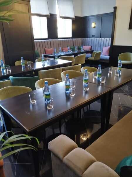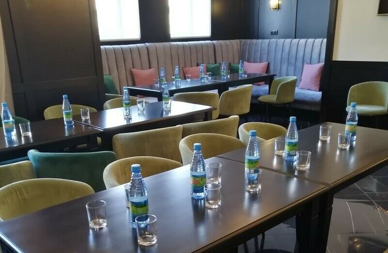 В зале проведен высокоскоростной интернет. Во время мероприятия гости могут разместиться на диванчиках или удобных мягких креслах, при необходимости — за столами. Конференц-зал «Актру» — просторный и светлый, интерьер поддерживает общую стилистику гостиницы.