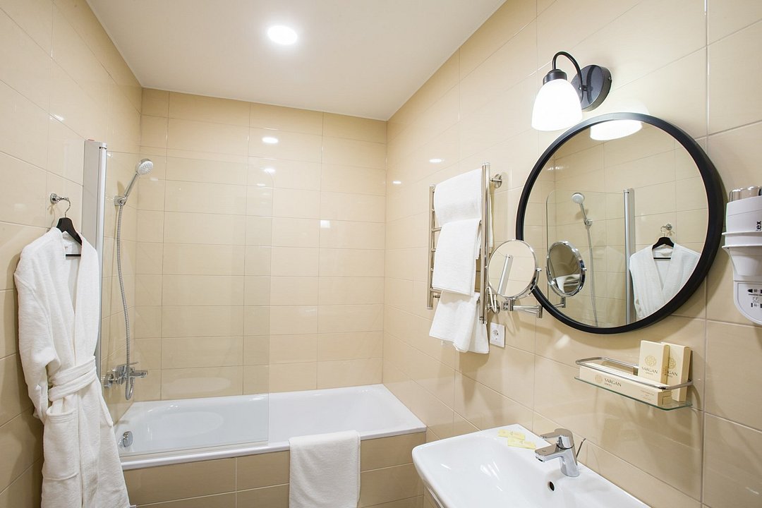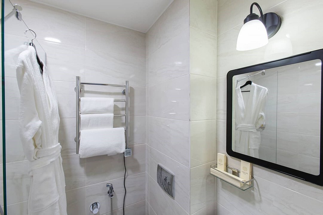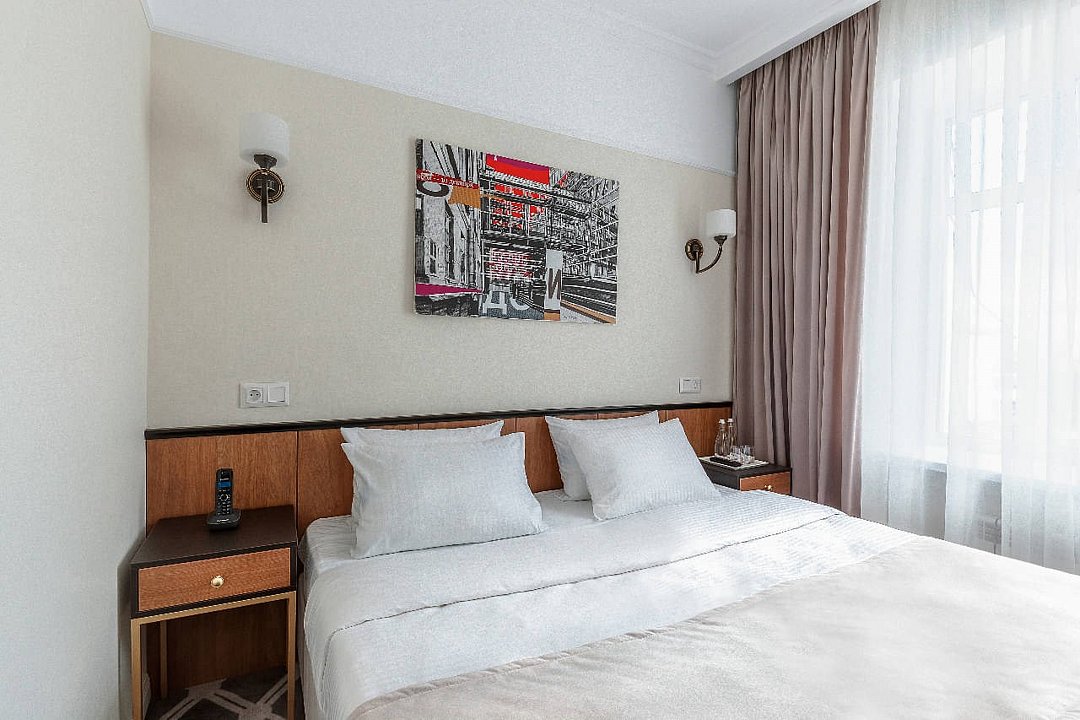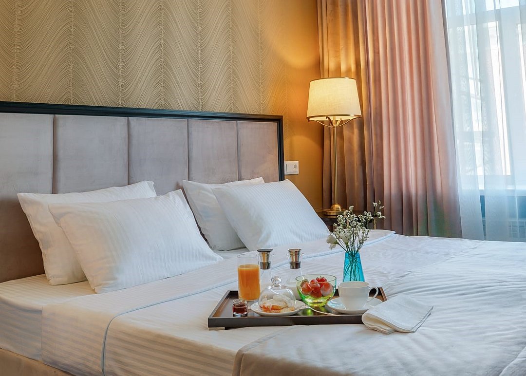 Отель готов предложить уютные и современные номера категории «Стандарт - бизнес». Комфорт туристов дополнит современный интерьер, бытовая техника и дизайнерская мебель. Для особого удобства комната разделена на зоны для сна и работы. В числе удобств — кровать "Double" или "Twin", система климат - контроля, телевизор с плоским экраном, холодильник, сейф. Собственная ванная комната укомплектована халатом, феном и бесплатными туалетно - косметическими принадлежностями.Услуги и удобства