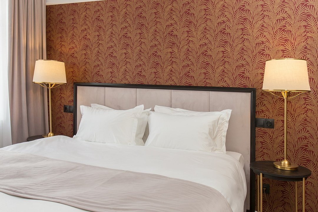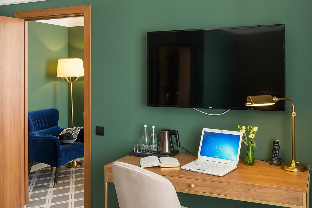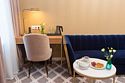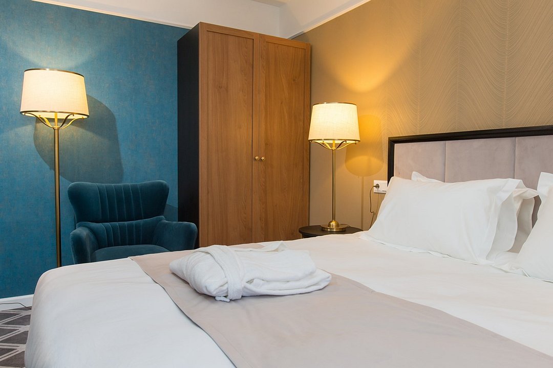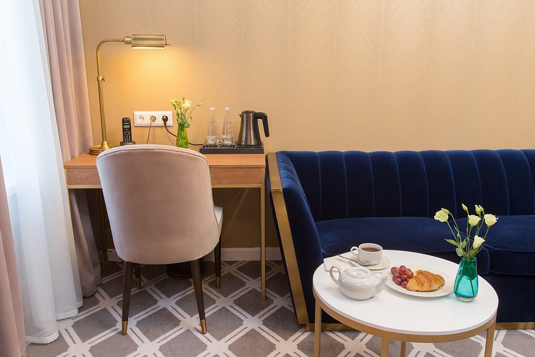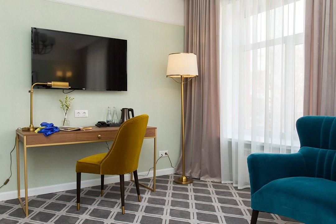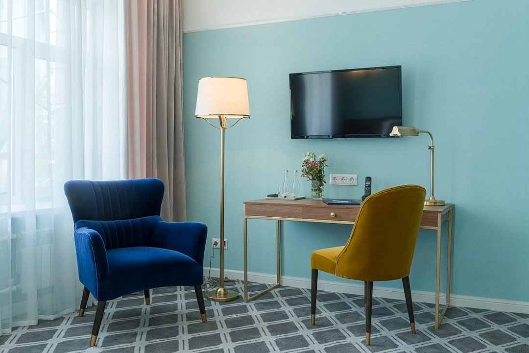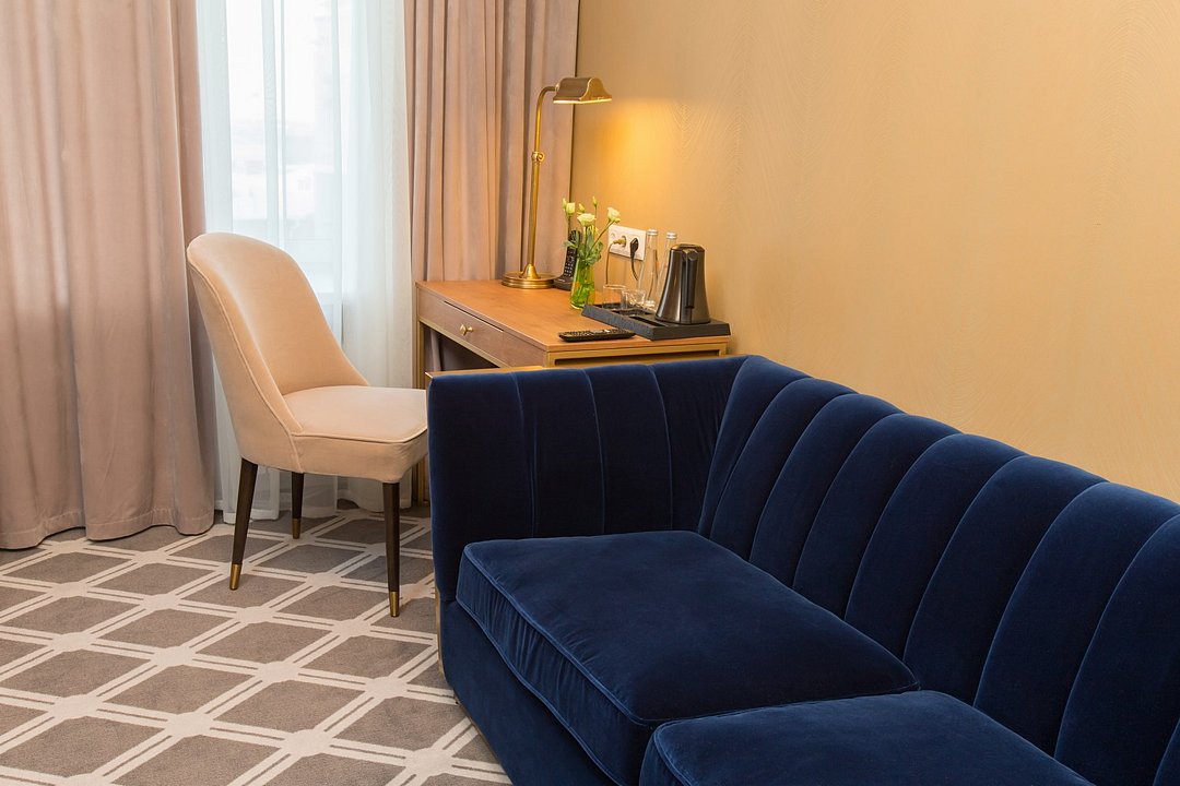 Особенно уютными, современными и комфортными в отеле считаются двухкомнатные номера категории «Люкс». Комфорт номеру добавляет дизайнерская мебель в сочетании с современными элементами интерьера. В числе удобств — кровать "Double" или "Twin", система климат-контроля, холодильник, сейф, 2 телевизора с плоским экраном. Собственная ванная комната укомплектована халатом, феном и бесплатными туалетно - косметическими принадлежностями.Услуги и удобства