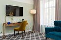 два телевизора, спутниковое телевидение, Wi-Fi, интернет, кондиционер, система климат-контроля, светильник, настольные лампы, электронные замки, ванная комната, душевая кабина, санузел, халаты, банные полотенца, тапочки, балкон, двуспальная кровать, диван, тумбы, шкаф для одежды, гардеробная, письменный стол, зеркало, пуфики, две комнаты, чайный набор, информационная карта, меню, сейф, чайник, унитаз, раковина, косметическое зеркало, гостиная зона, отдельный вход в номер, душ, вид на город, кресло, стул, стол, тумба, туалетные средства, туалет, внутренний телефон, мини-холодильник, гостиничная парфюмерияВ гостиничном номере