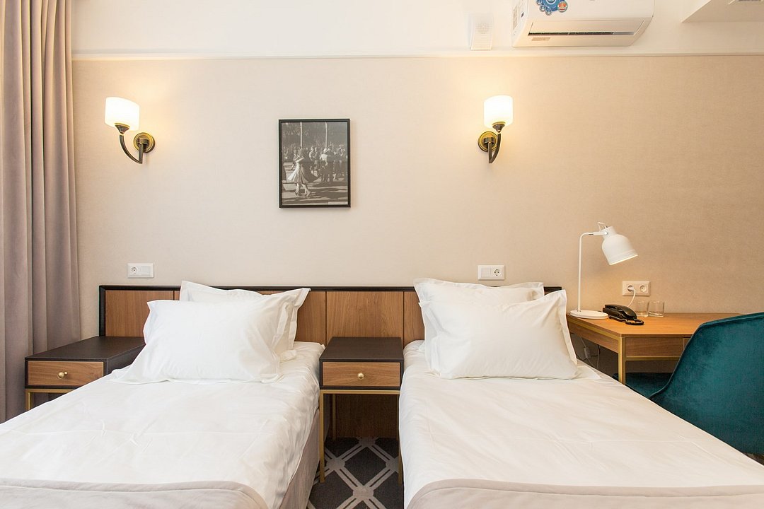 Номер с кроватями "Twin". В числе удобств — система климат-контроля, телевизор с плоским экраном, холодильник. Собственная ванная комната, которая укомплектована феном и бесплатными туалетно-косметическими принадлежностями.Услуги и удобства