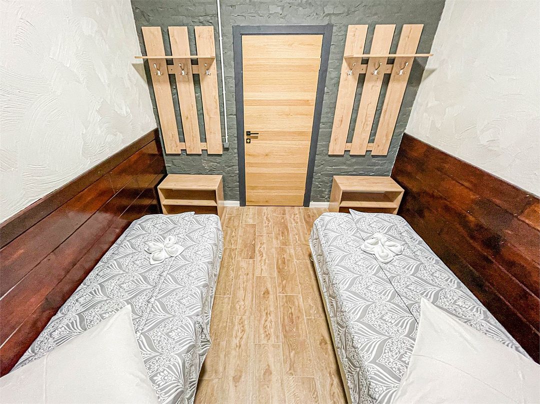 Wi-Fi, две односпальные кровати, тумбы, вешалкиВ гостиничном номере