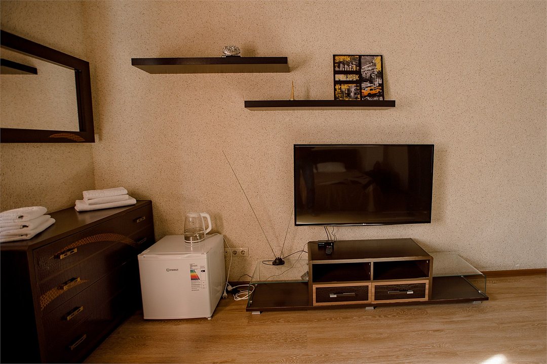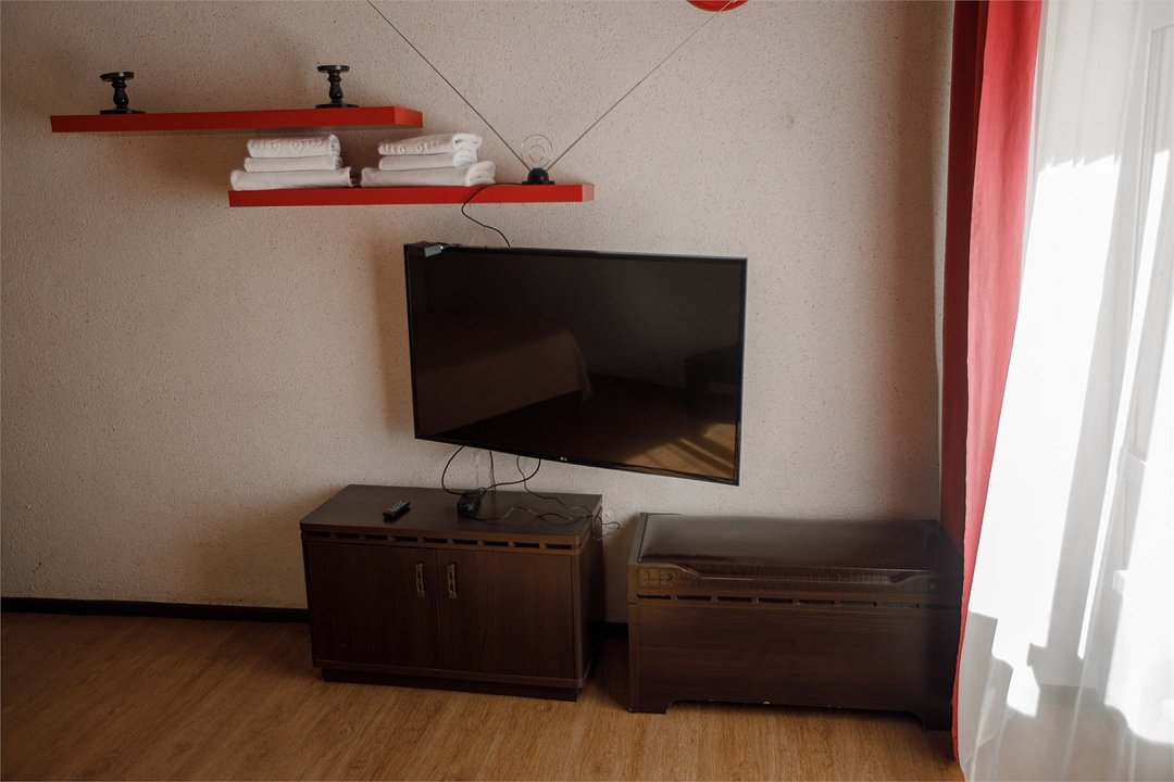 Номер уютно обставлен и оснащён необходимым, чтобы отдохнуть после долгого и насыщенного дня. Имеются телевизор. Оснащение зависит от выбранной категории номера.