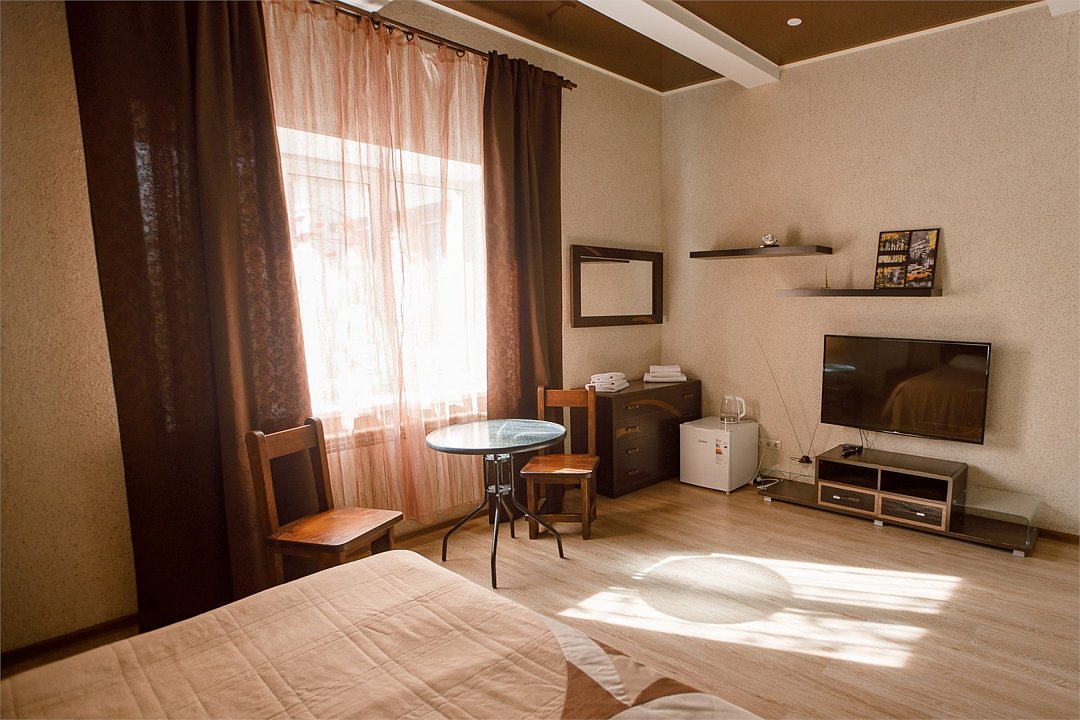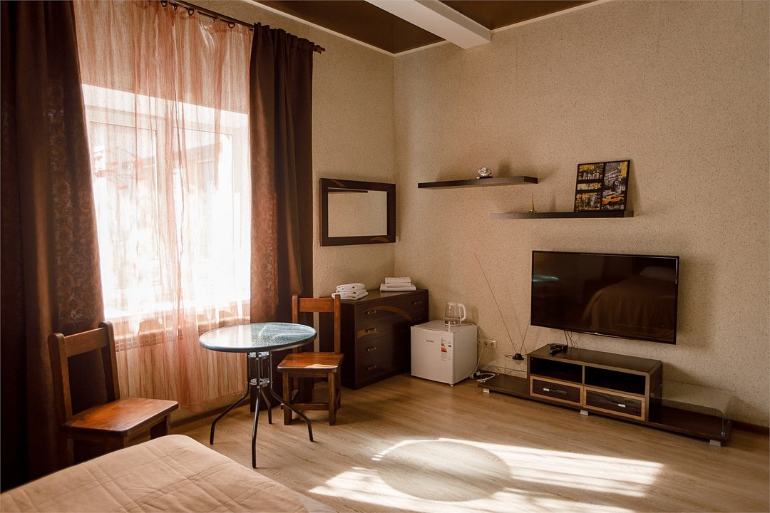 Уютные номера в категории Стандарт подходят для размещения одного или двух Гостей. В номере двуспальная кровать, телевизор, окно с видом в тихий двор. Каждый номер имеет отличающийся интерьер. В мини-отеле есть общая кухня, баня, беседка BBQ, прачечная.Услуги и удобства