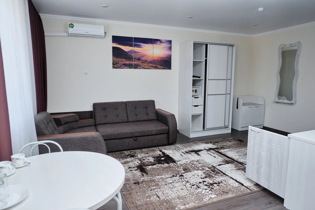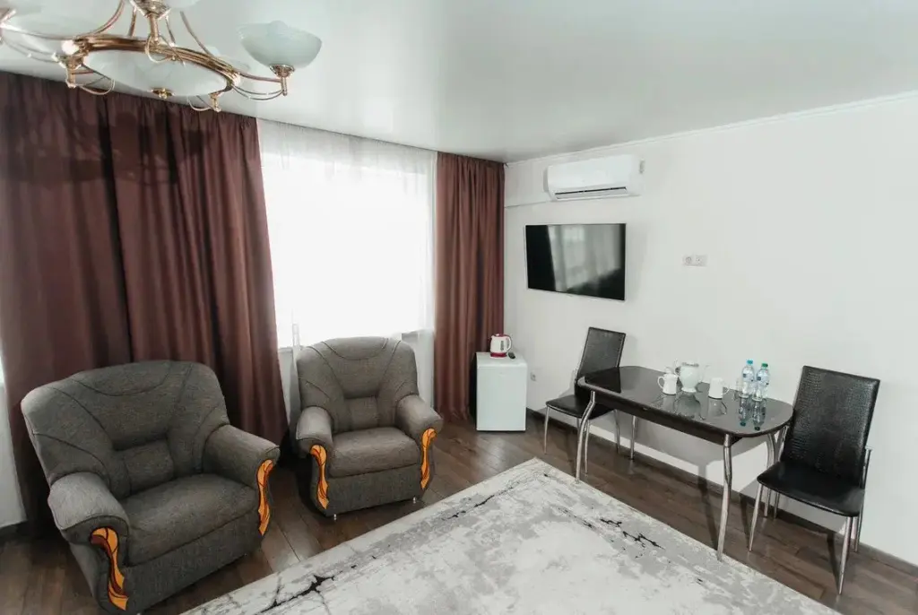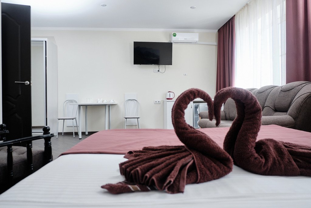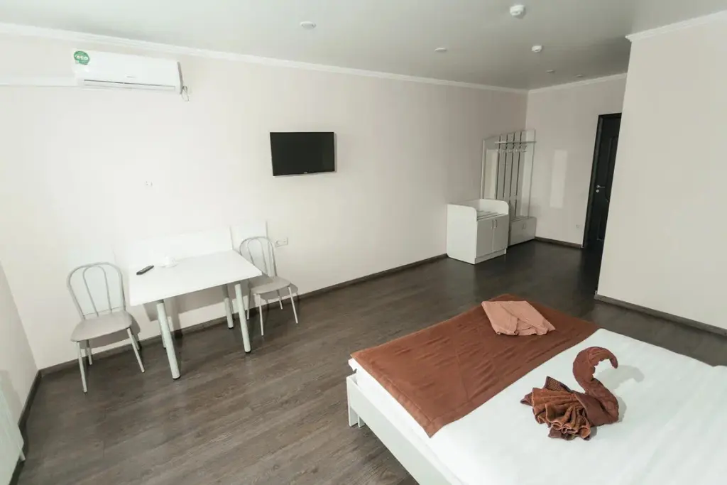 В номере гостей ждут телевизор и халат. Перечисленные услуги есть не во всех номерах.