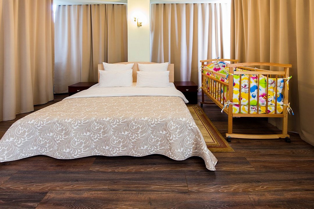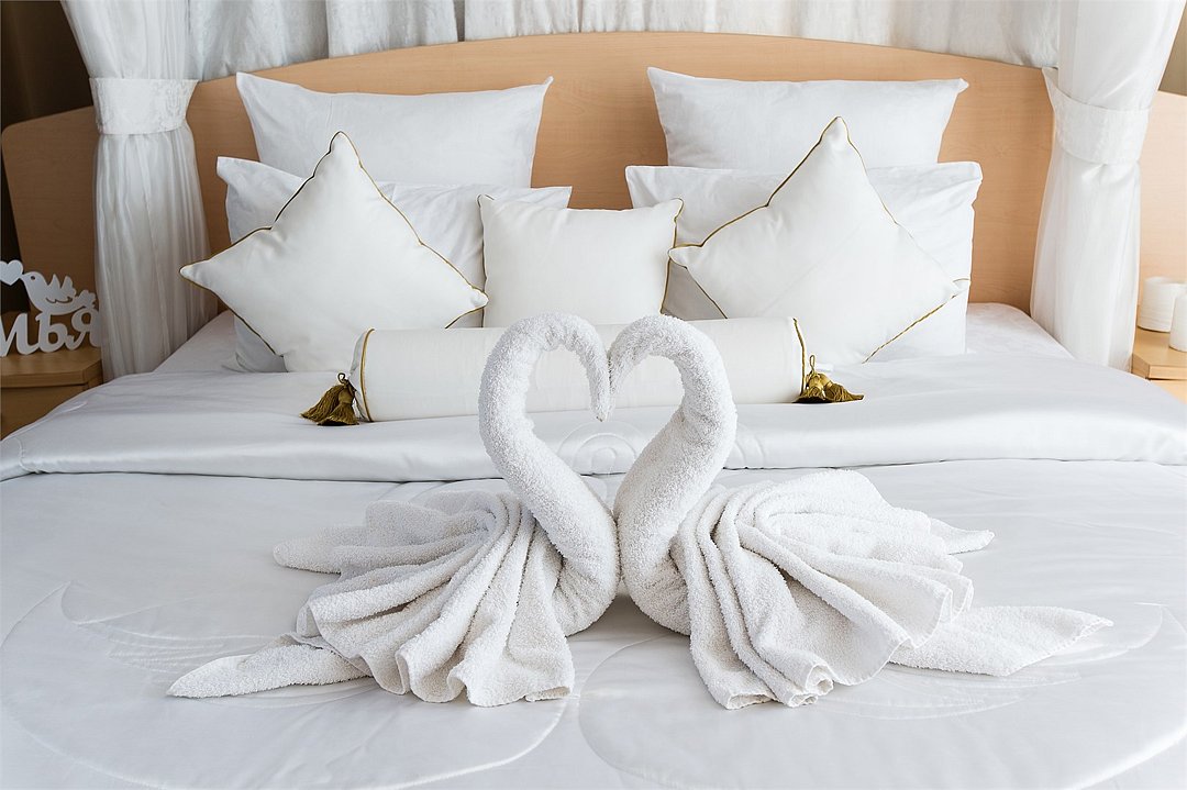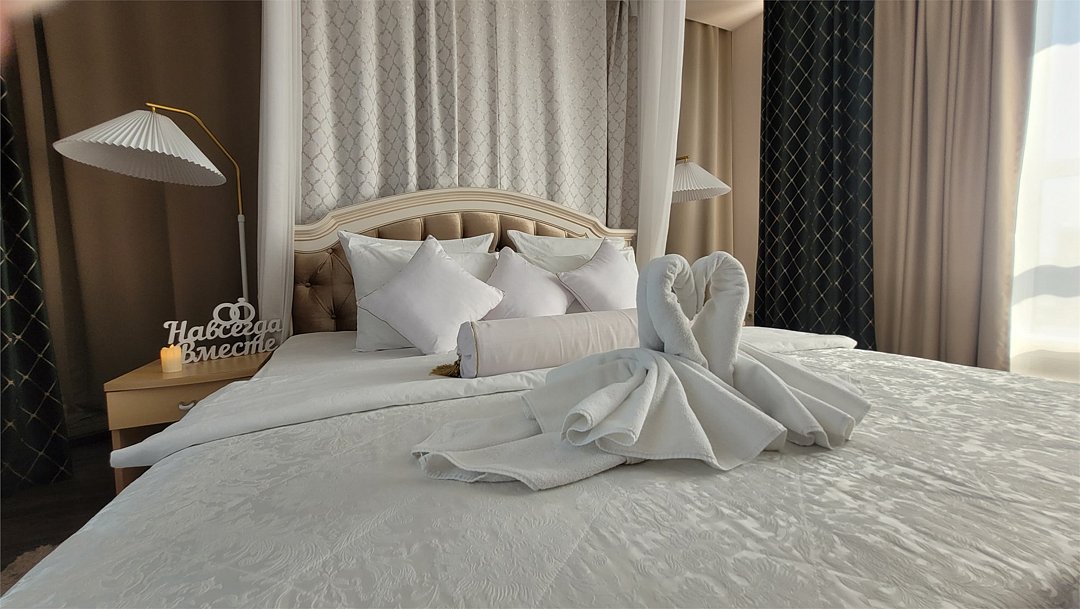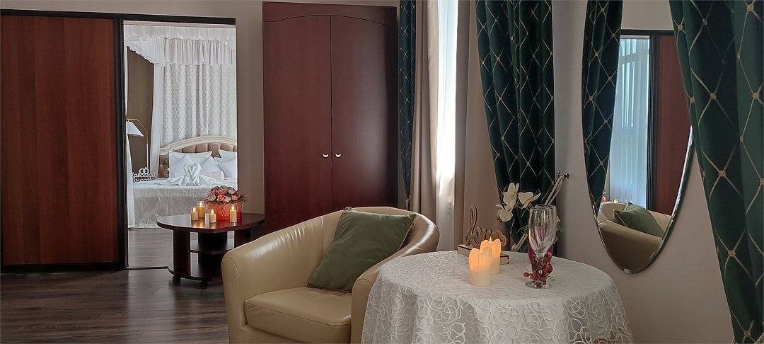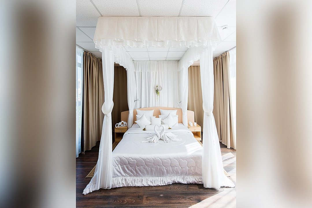 Свадебный номер относится к высшей категории Lux (Люкс). Номер оформляется специально для молодожёнов. Свадебный номер имеет оригинальный дизайн, повышенную комфортность и большую площадь. Завтрак подаётся в номер.Услуги и удобства