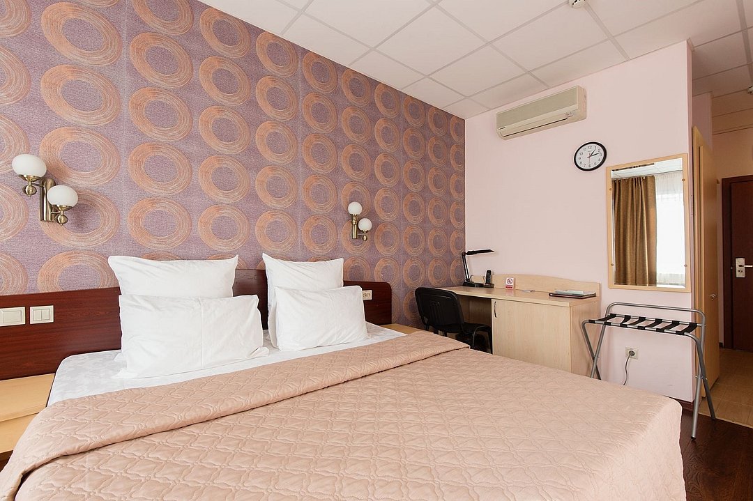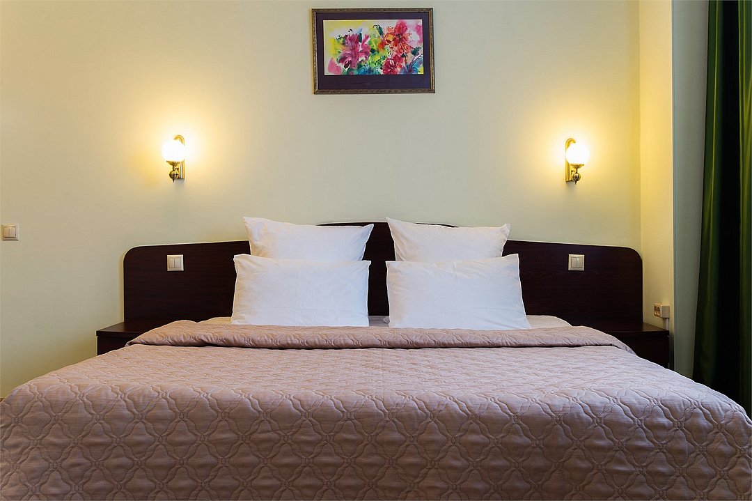 В номерах категории Double (Дабл) имеется одна большая двуспальная кровать либо две смежных кровати. Полностью благоустроенный номер 1-й категории Double идеально подойдет для размещения и комфортного длительного проживания семейной пары или двух гостей.Услуги и удобства