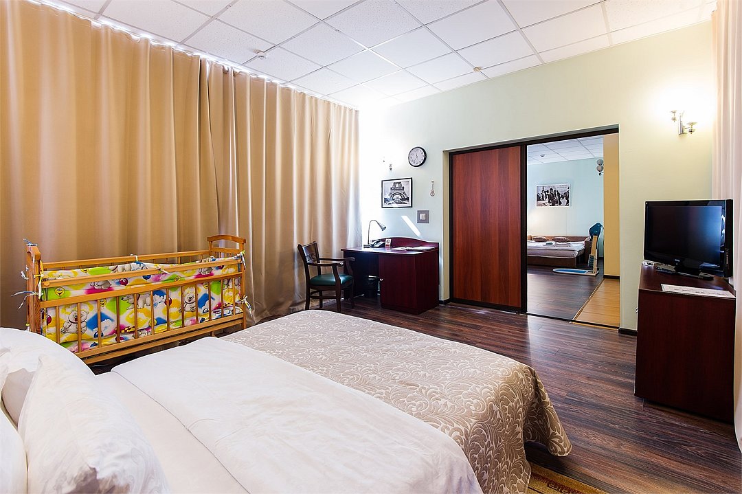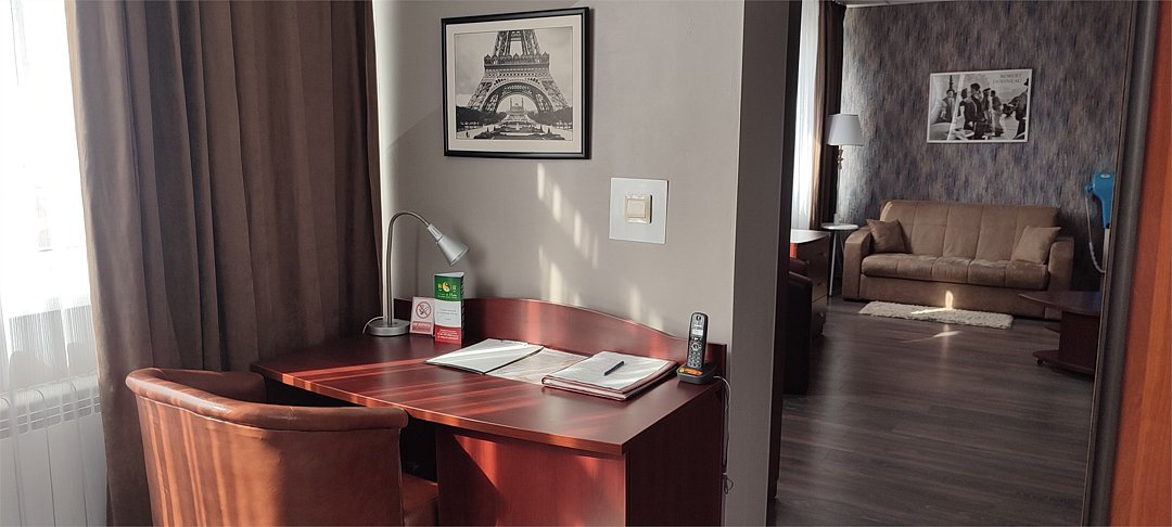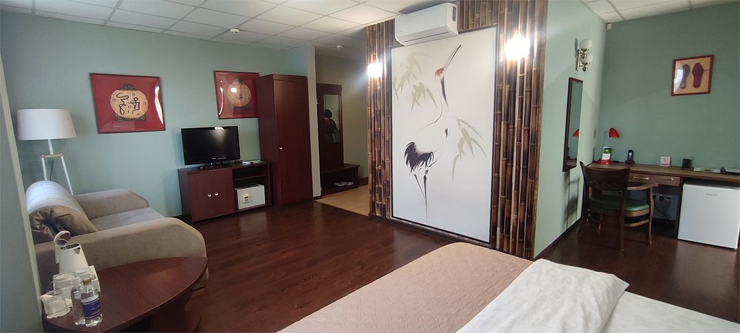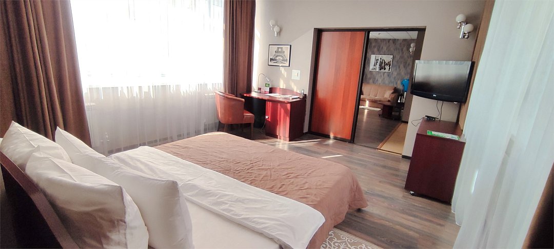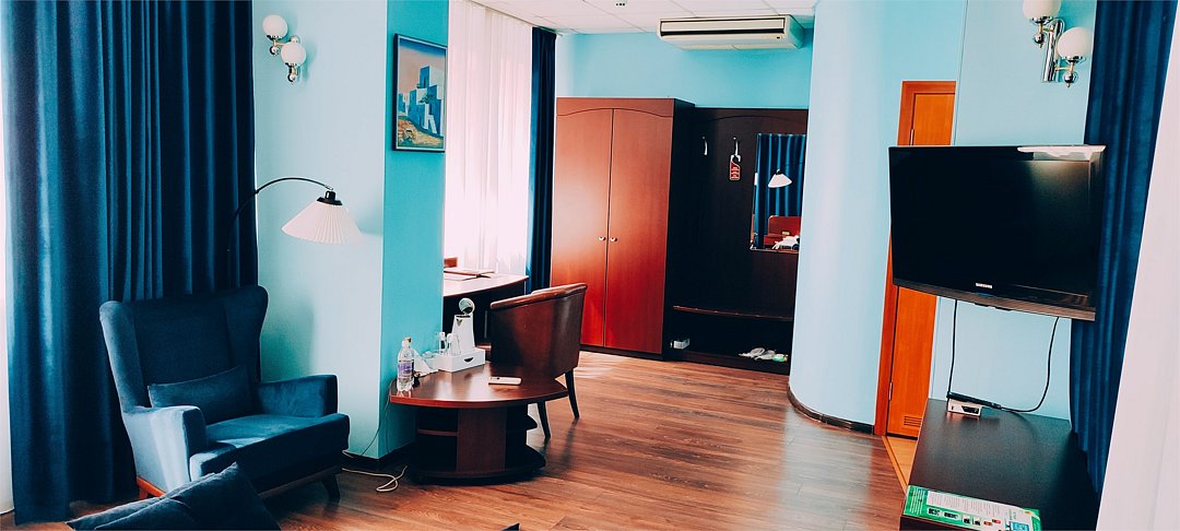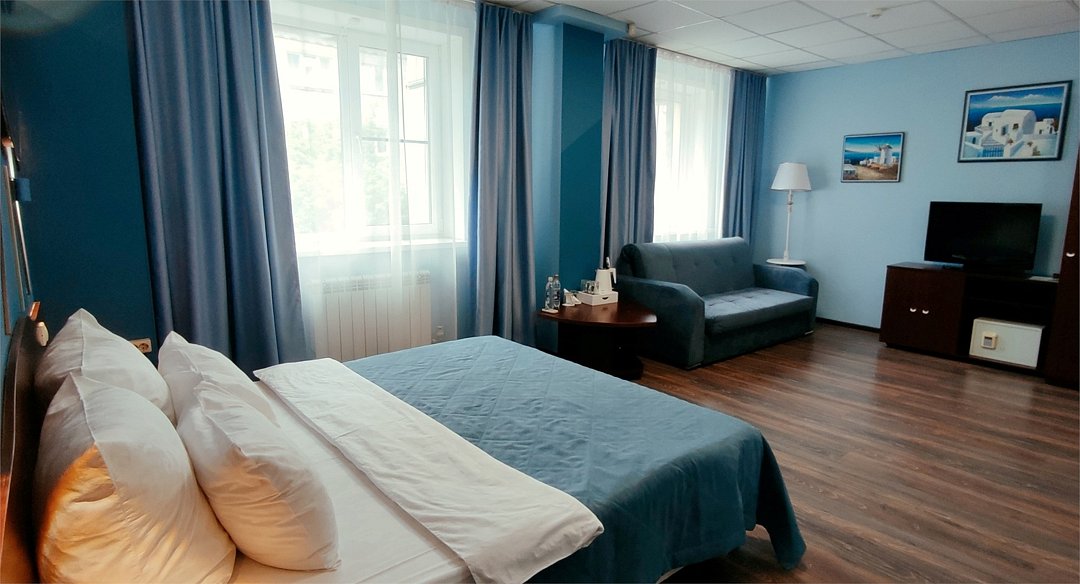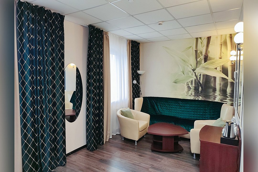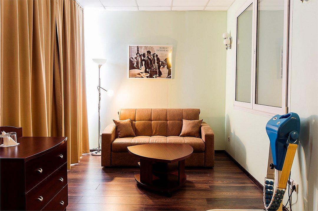 Номера высшей категории Junior Suite (Джуниор Сьют) отличаются оригинальным дизайном и повышенной комфортностью. Имеется мягкая зона для отдыха, большая ванная комната, сейф, тренажёр.Услуги и удобства