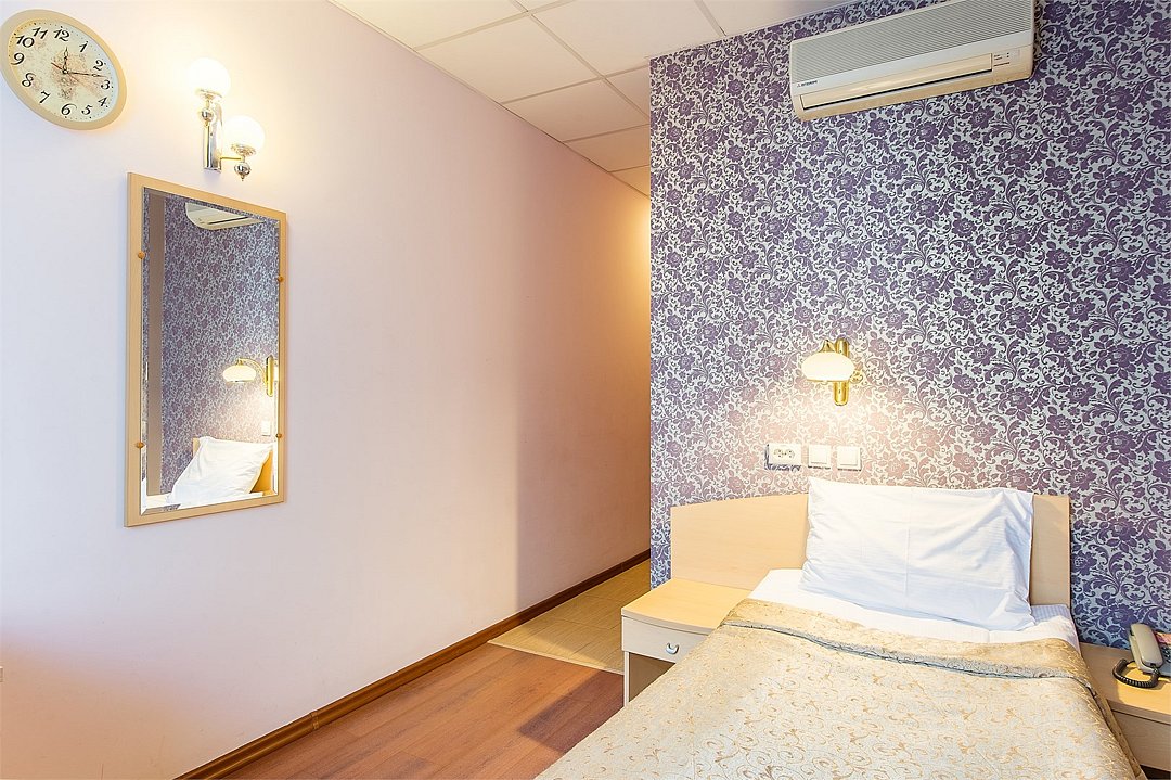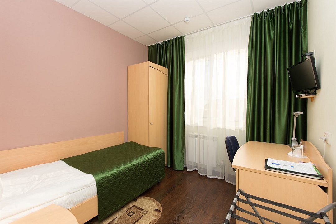 Небольшой номер с односпальной кроватью. Уютный полностью благоустроенный номер 1-й категории «Стандартный одноместный номер» идеально подходит для деловых поездок.Услуги и удобства