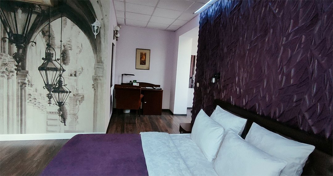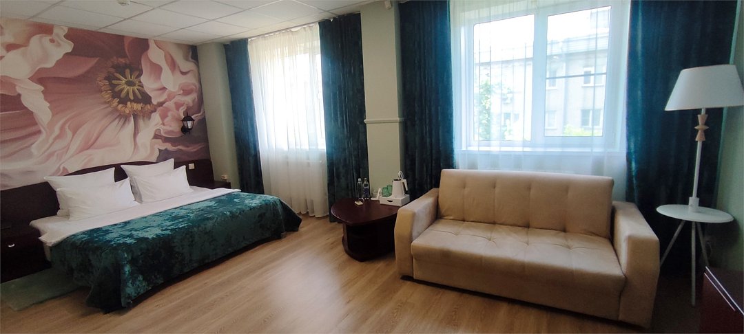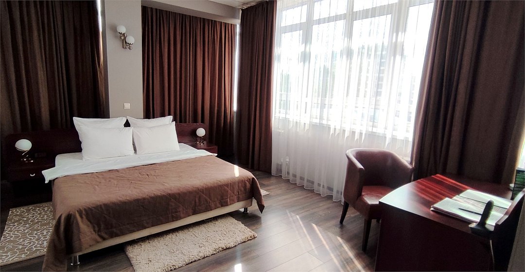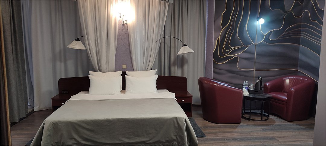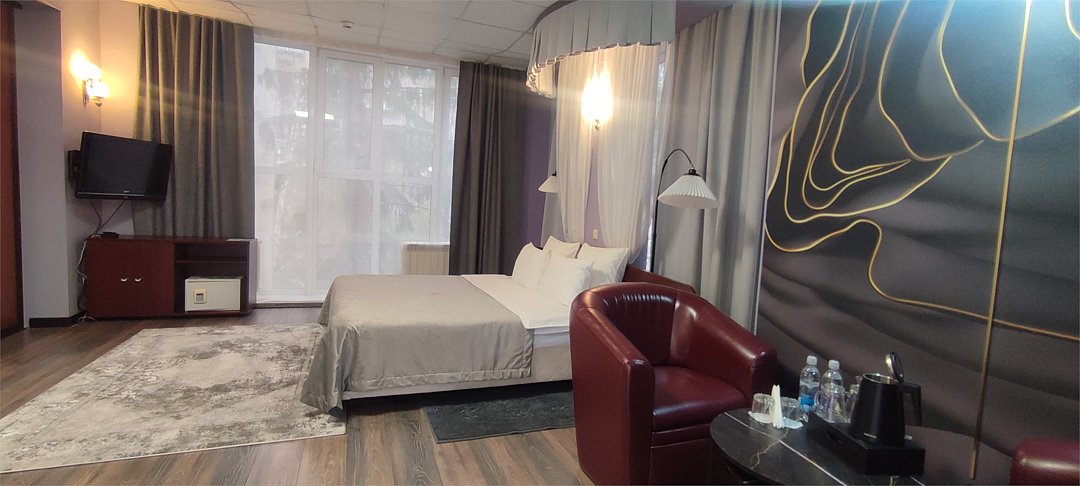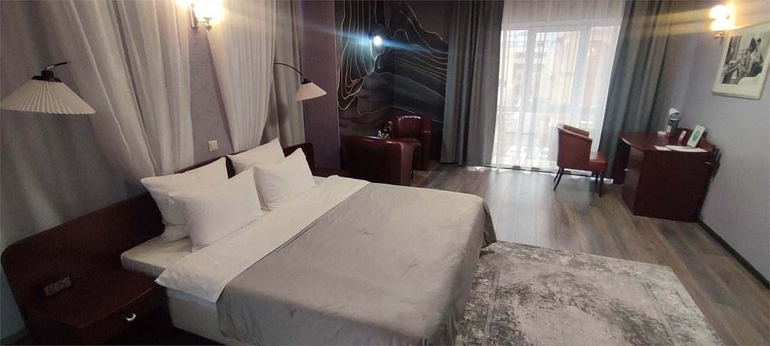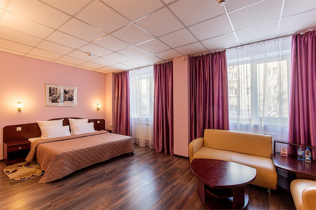 Номера категории Lux (Люкс) отличаются оригинальным дизайном, повышенной комфортностью и большей площадью. Имеется мягкая зона для отдыха, ванная комната с большой ванной или душем, сейф. Номера выполнены с эркерами (панорамные окна с видом на город).Услуги и удобства