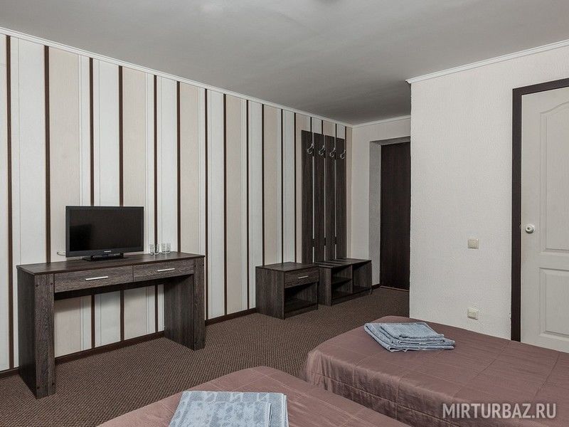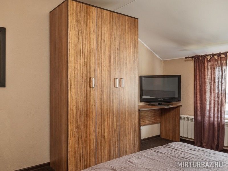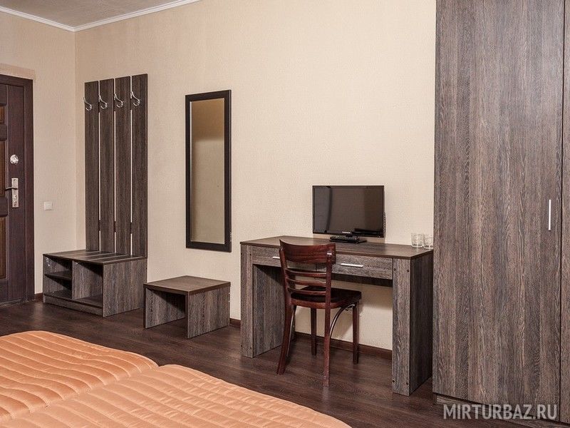 В номере: 2 односпальные кровати или одна двуспальная, плазменный телевизор, шкаф, письменный стол, прикроватные тумбочки.