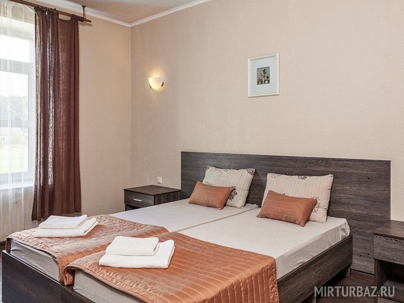 - Проживание в номерах на территории Парк-отеля: трехэтажный корпус с номерным фондом в 30 номеров разной вместимости, категории люкс, полулюкс и эконом.
