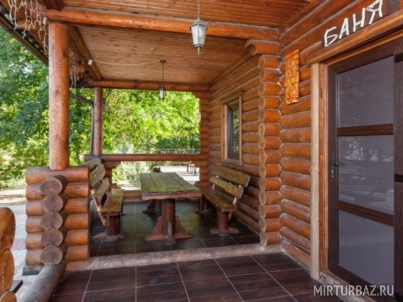 В бане есть стол, плазменный телевизор, парилка, 2 душа, WC, уличная терраса. Баня расположена рядом с большим открытым бассейном, работающим в летний период.
