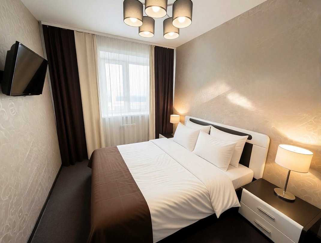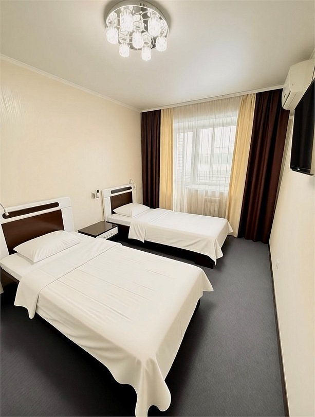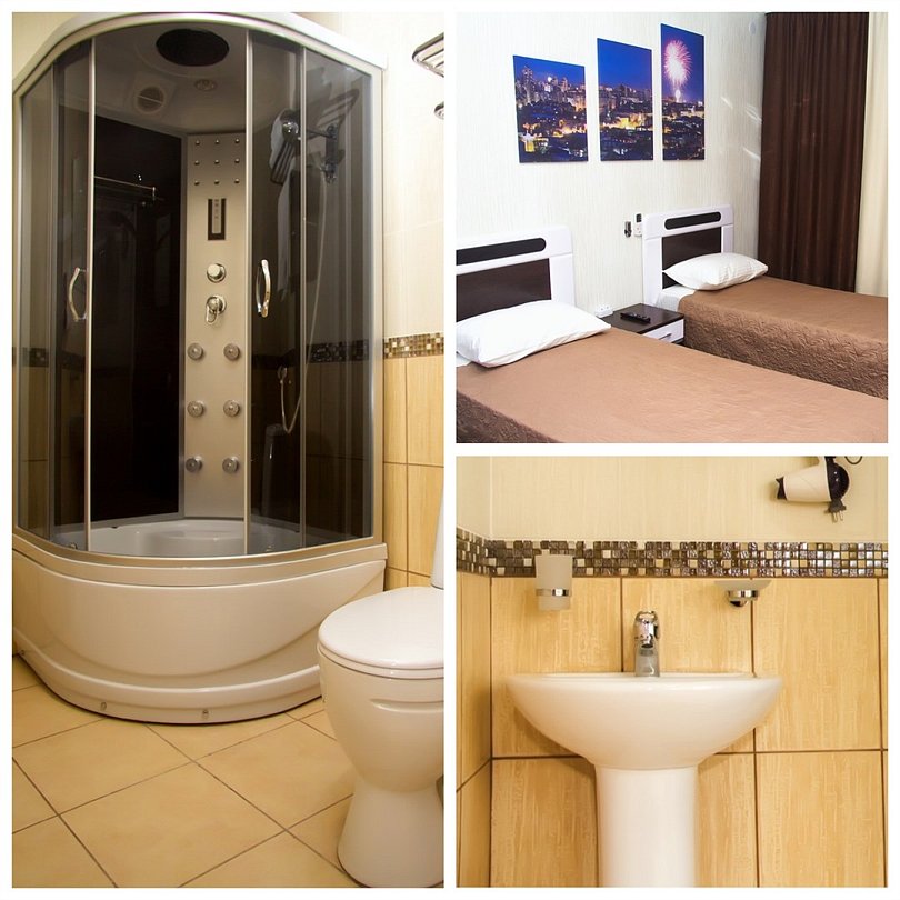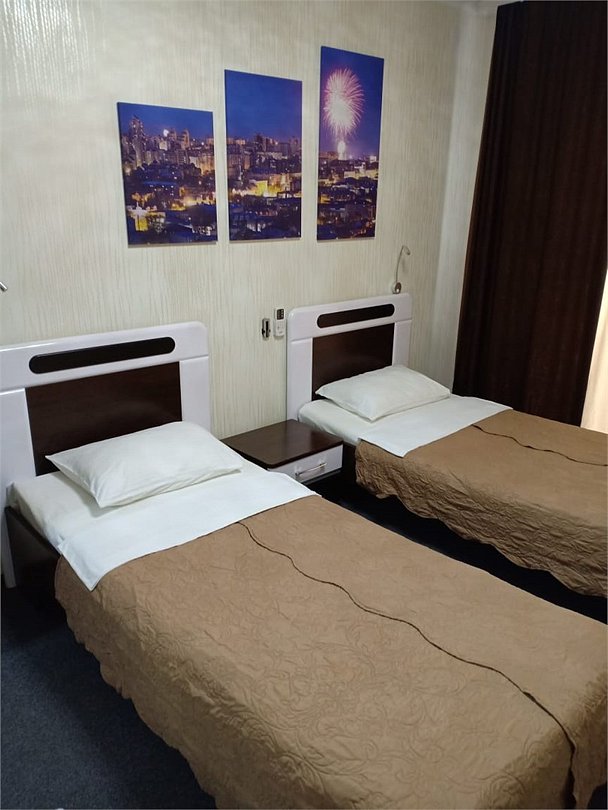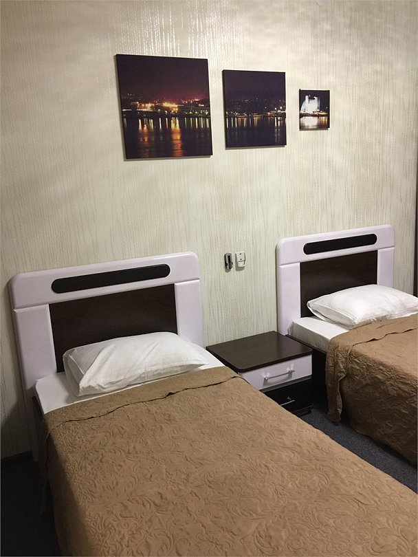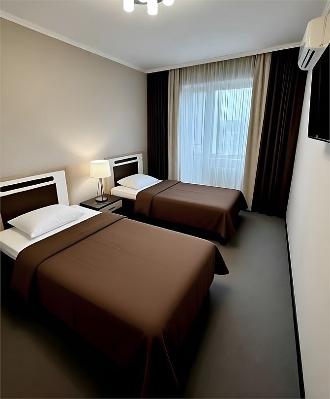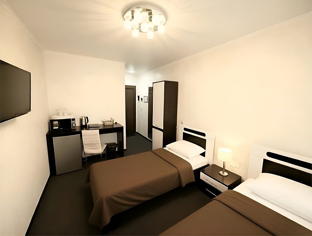 Двухместный "стандарт" номер состоит из одной комнаты. Это небольшой и уютный номер. В нем есть все необходимое: две кровати, рабочий стол, телевизор SMART, холодильник, гардероб, санузел и душевая кабина, а так же выход в Internet по технологии Wi-Fi (бесплатно).Услуги и удобства