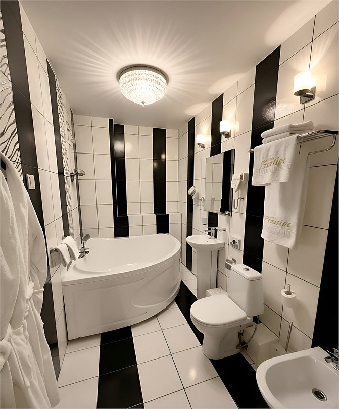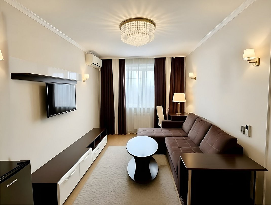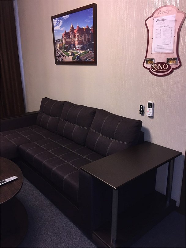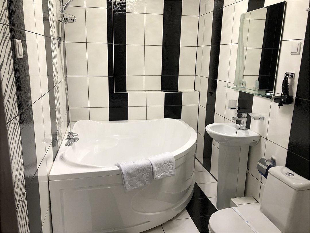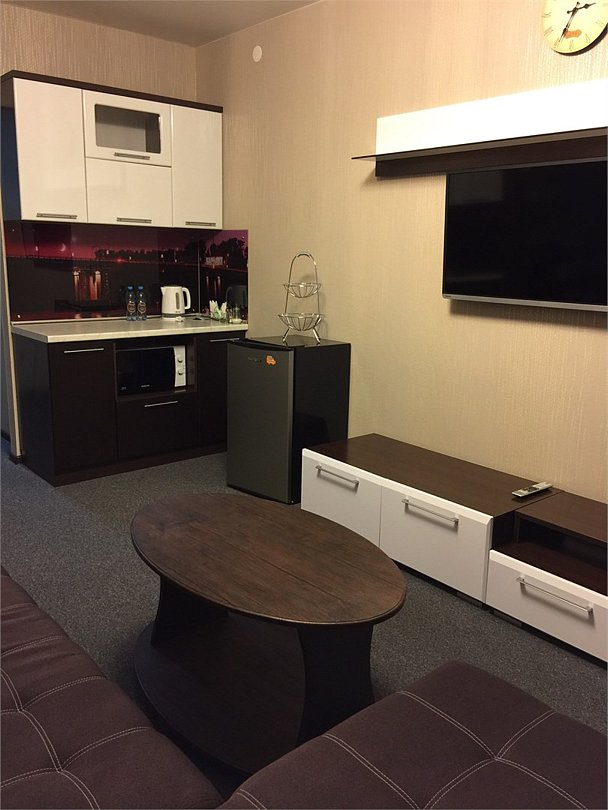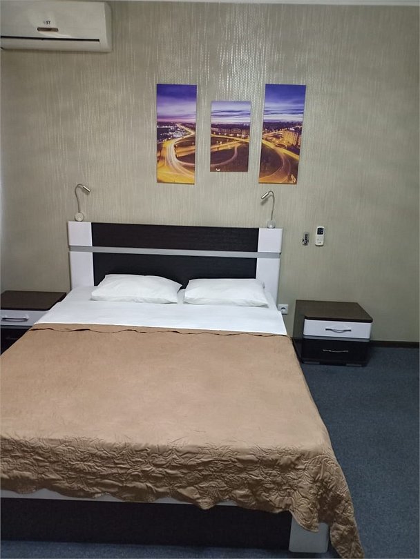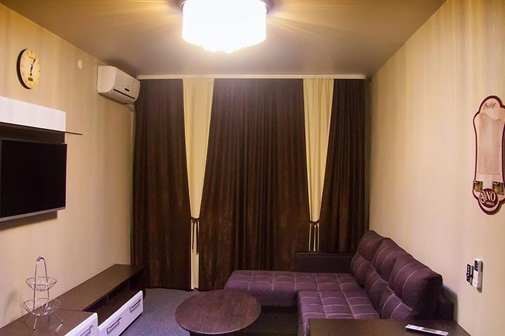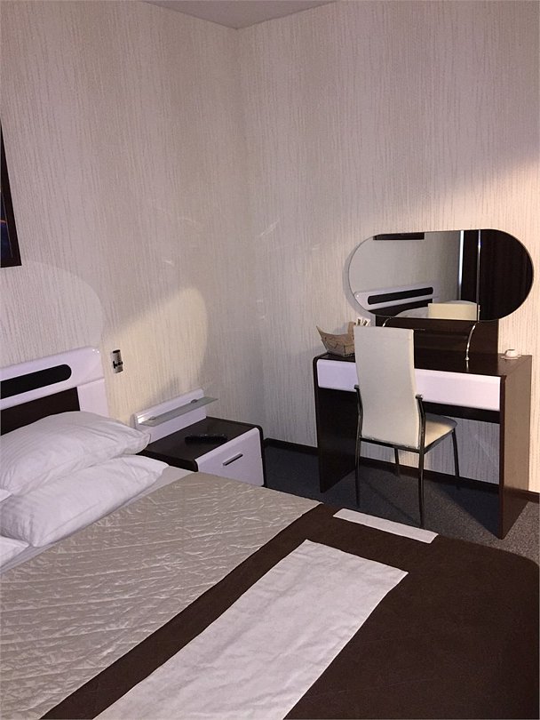 Номер категории «люкс» - современный и уютный, с системой кондиционирования воздуха и всеми удобствами. В нем имеется просторная гостиная с мини-кухней, с диваном, два телевизора SMART, журнальный столик, а также спальня, меблированная двуспальной кроватью, туалетным столиком, тумбочкой для личных вещей и вместительным шкафом для одежды. Санузел номера «люкс» оборудован всем необходимым. Выход в Internet по технологии Wi-Fi (бесплатно).Услуги и удобства