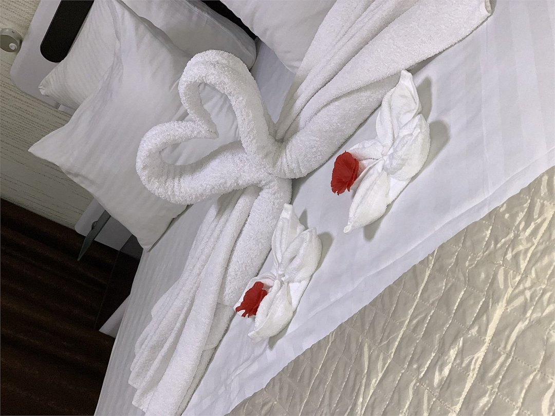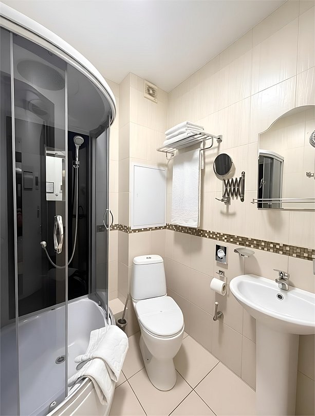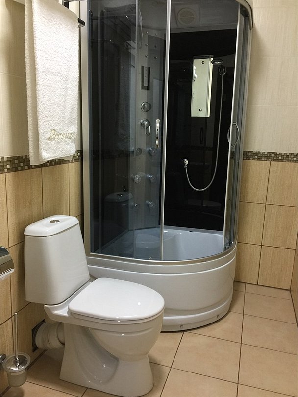 В уборных есть душевая кабина, туалетные принадлежности, халаты, тапочки. В летнее время года работает кондиционер. Также есть мини-бар, но он оплачивается отдельно. Раз в 3 дня проходит уборка помещений, смена постельного белья. Полотенца меняют каждый день.