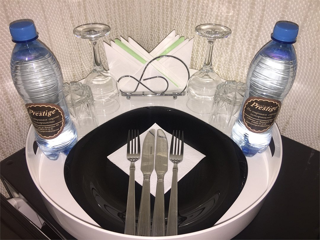 В комплексе есть кафе, где можно перекусить. Завтраки входят в стоимость и подаются по предварительному заказу по меню. На первом этаже открыта сувенирная лавка. У подъезда есть парковка, которая охраняется круглосуточно.